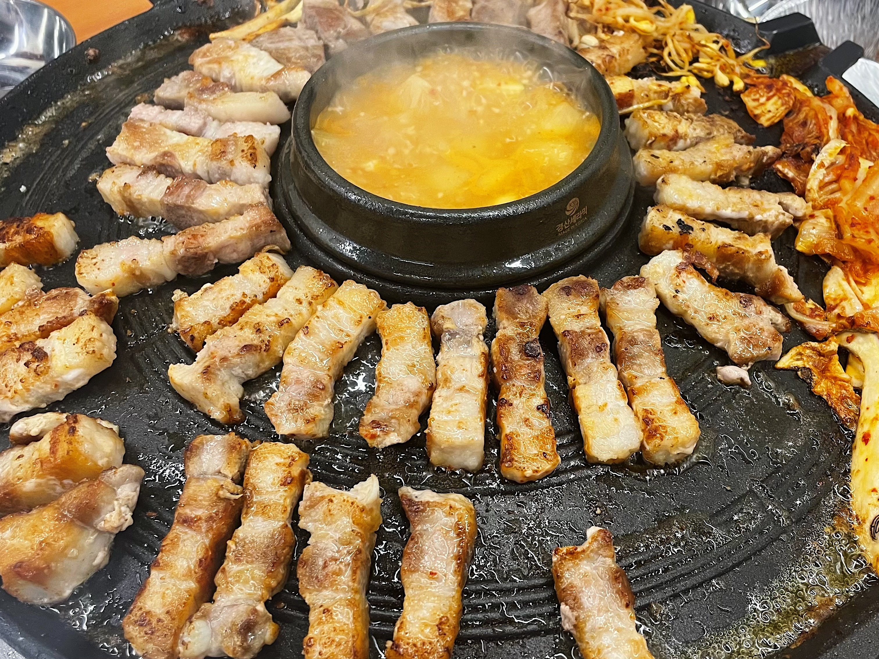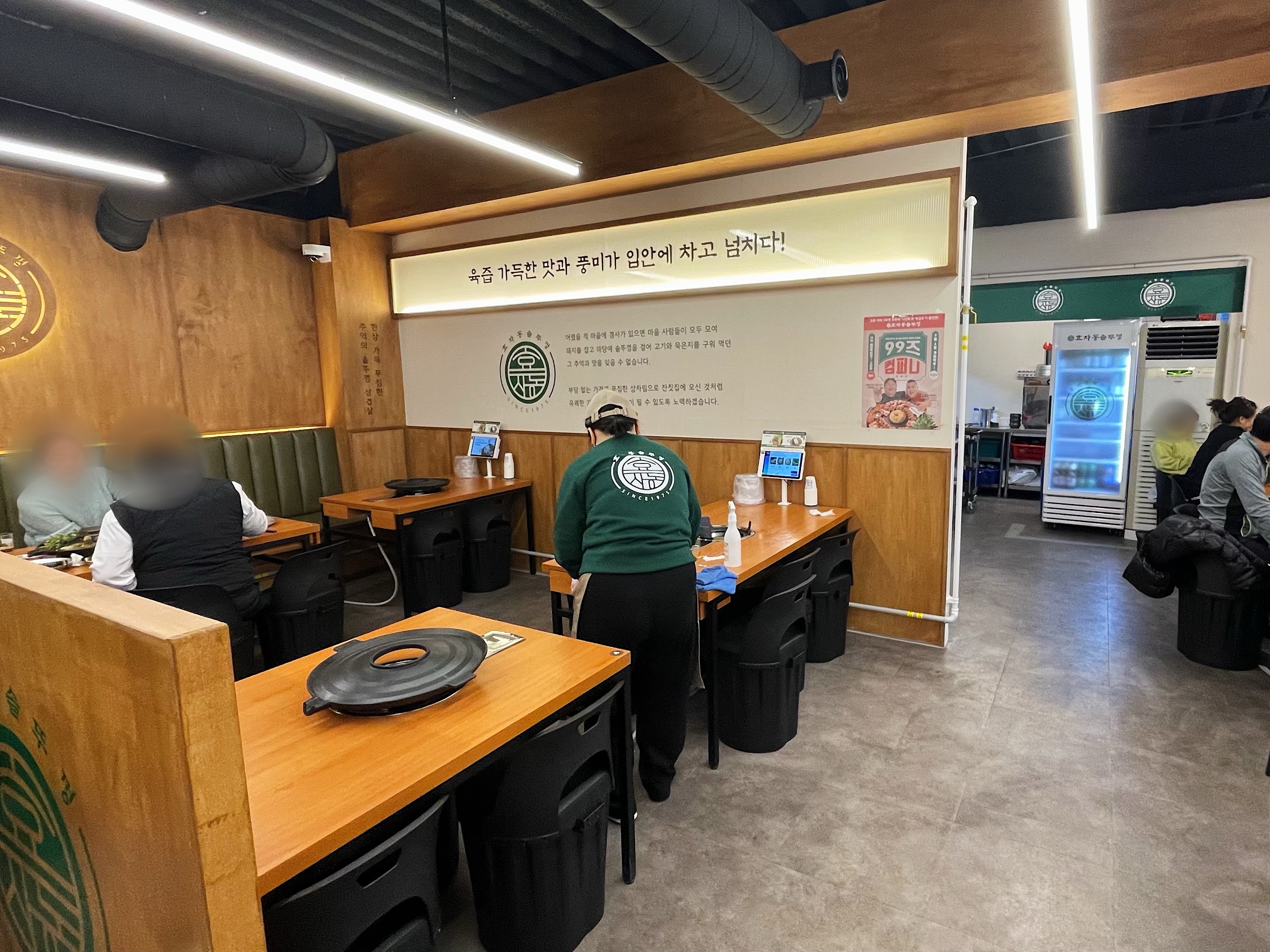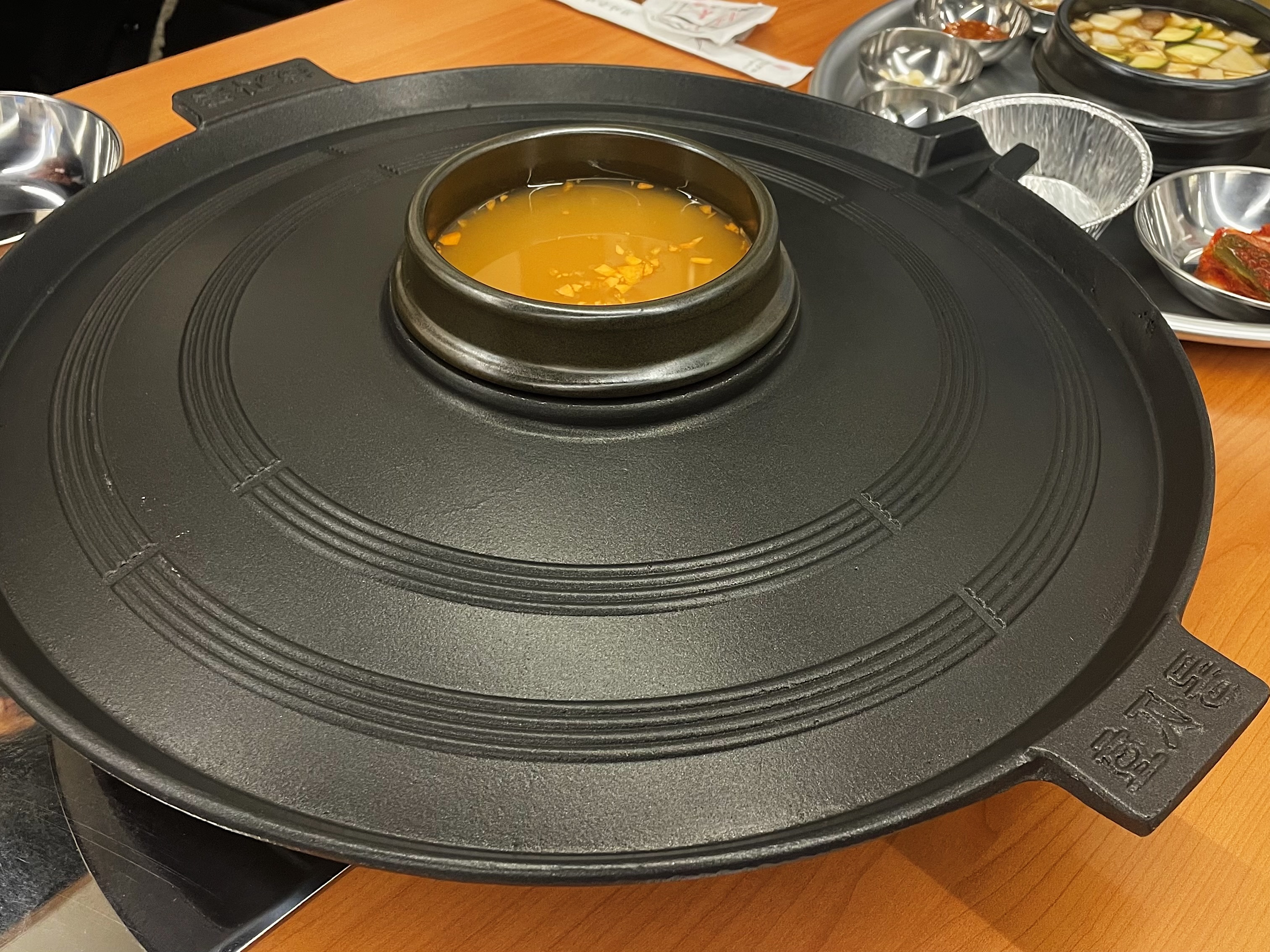 오픈한 지 얼마 되지 않았다는 걸 깨끗한 솥뚜껑 불판을 보니 확 체감이 됩니다.