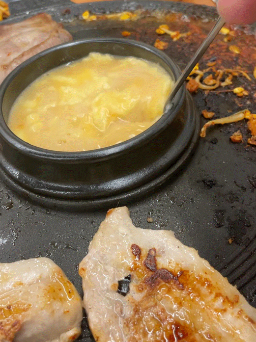 고기가 나오기 전에 계란찜이 먼저 익었습니다.