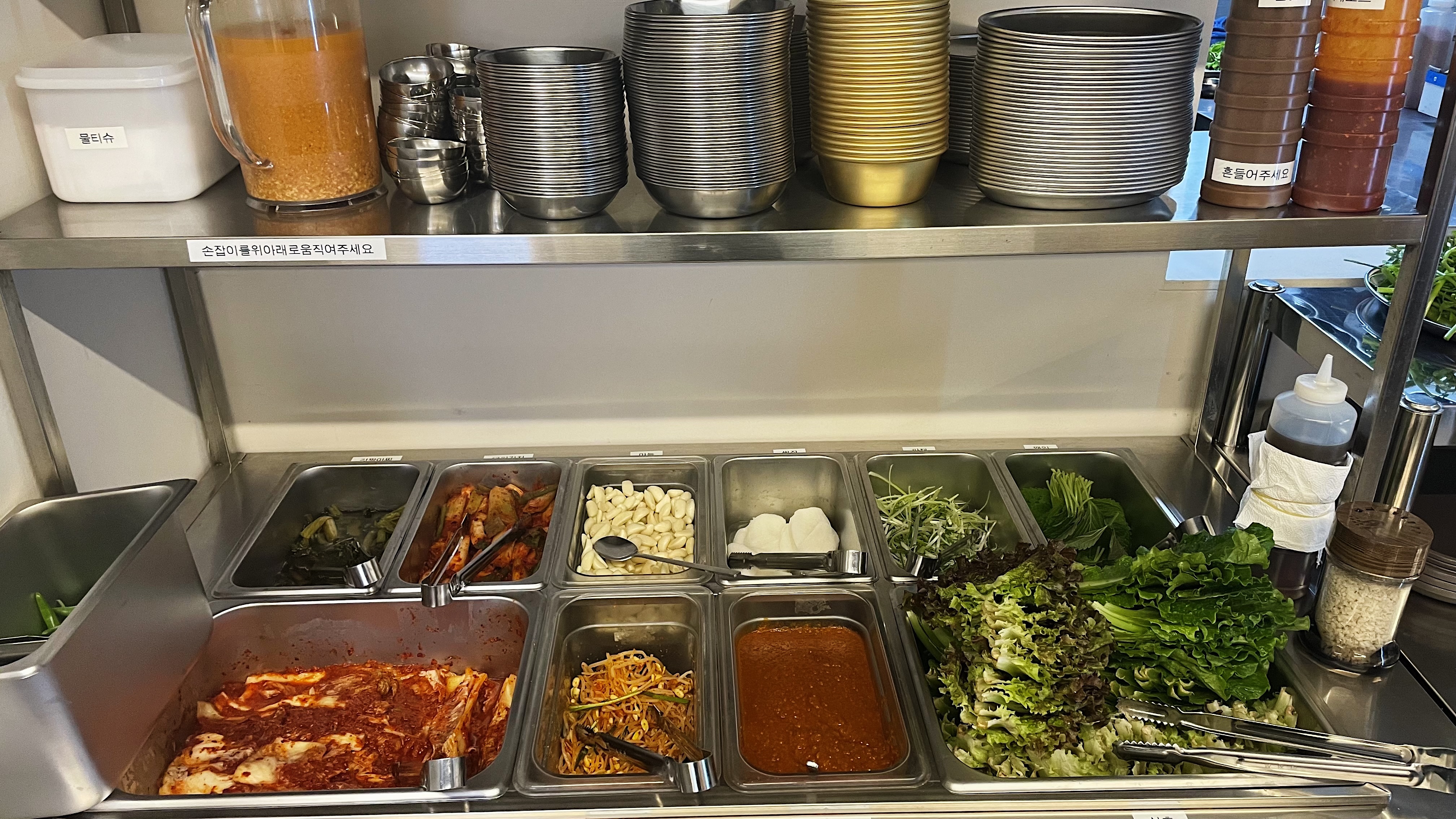 근데 셀프바에 가보니 쌈무를 비롯해 추가 반찬이 더 있더라고요.