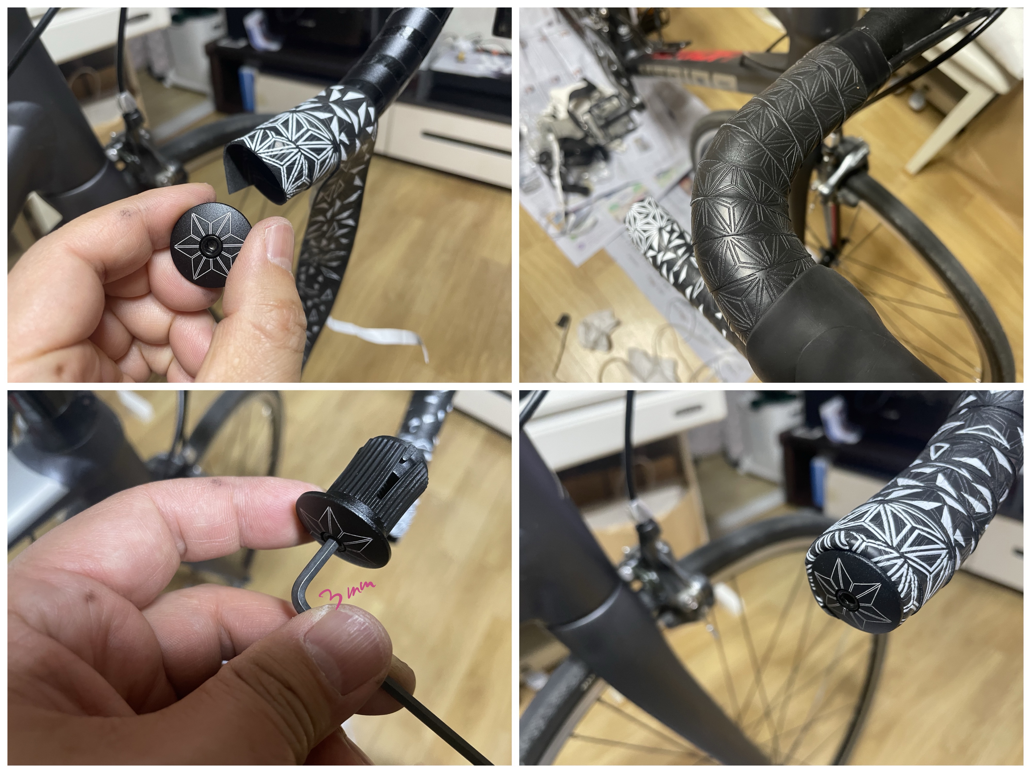 제가 구매한 수파카즈 제품의 바엔드캡은 3mm 육각 렌치를 이용해 조여주면 내부에서 부풀어 오르면서 고정이 되는 방식이었습니다.