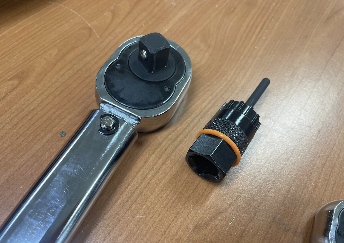- 스프라켓 툴로 걸고 락링툴을 렌치로 돌려주었습니다.