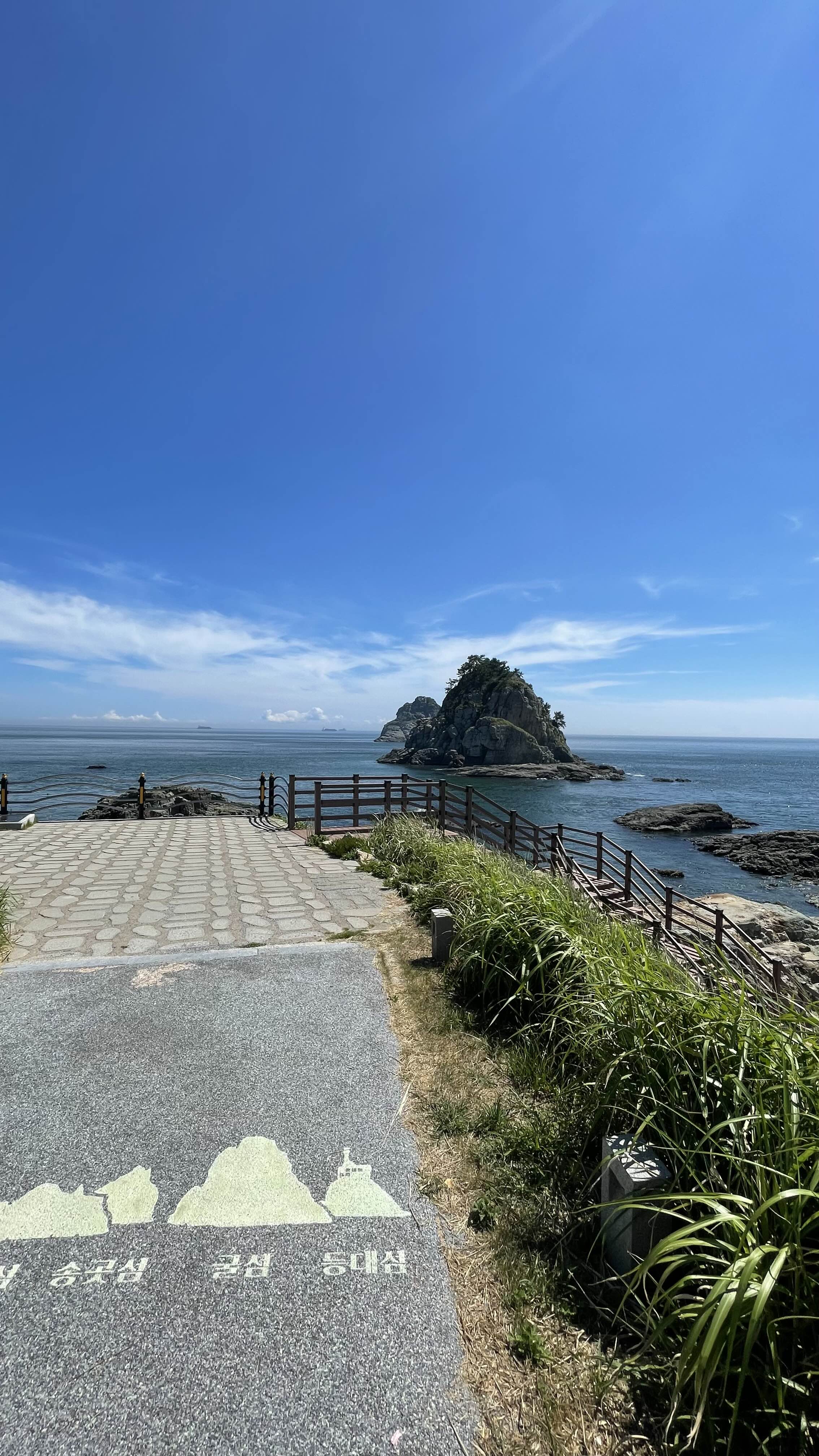 스카이워크에서 조금 내려가면 바다가 펼쳐지는 산책로가 나옵니다. 걷기 편안한 포장길이고, 주변의 나무와 풀이 어우러져 마음까지 편안해지는 아름다운 풍경이었습니다. 자연과 바다가 가까이 느껴져 힐링하기 좋았습니다.