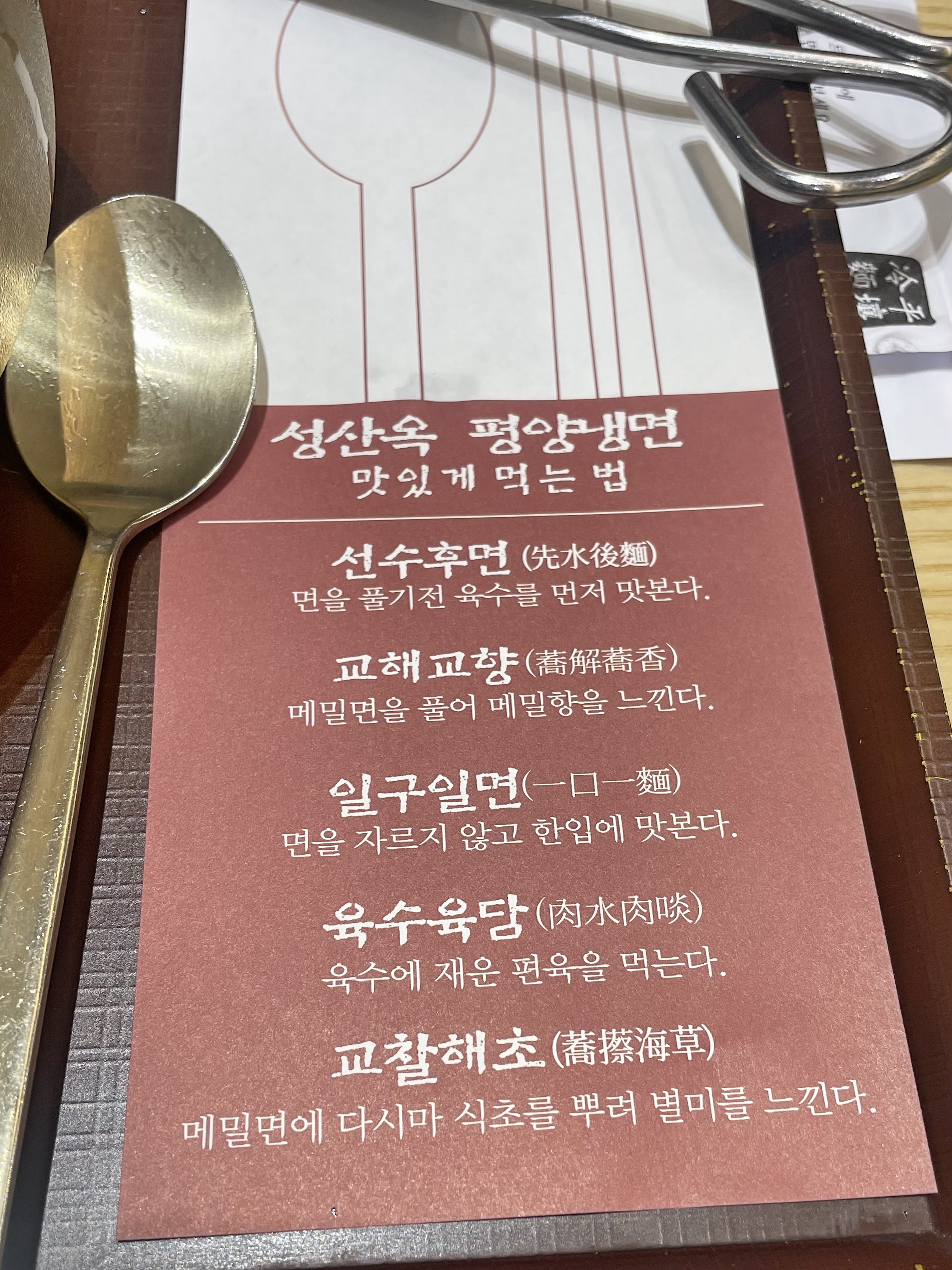사실 저도 그리 좋아하는 편은 아닌데요. 이 곳 성산옥에서 맛본 평양냉면은 다시 와서 먹어봐도 좋겠다는 생각이 들었습니다.