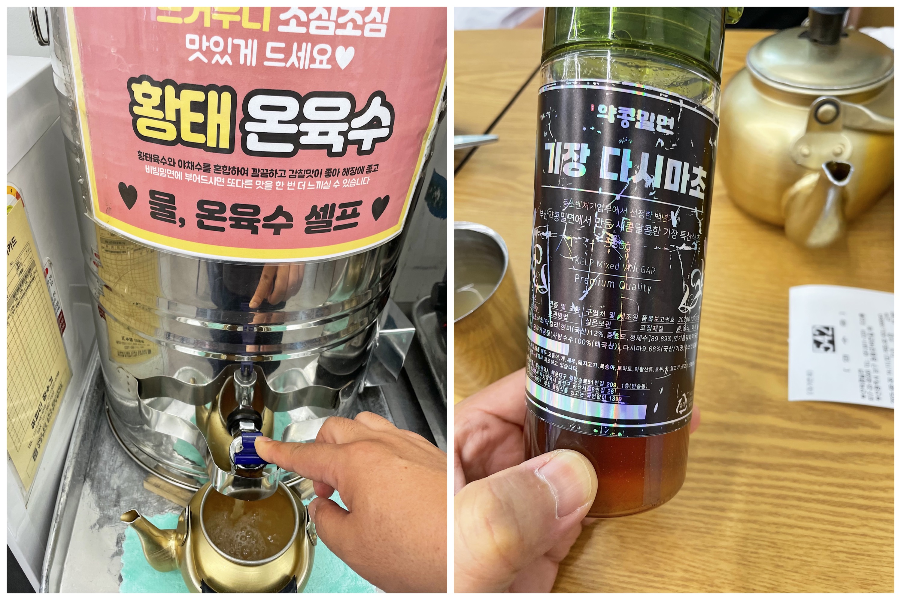 테이블 위에는 가게에서 직접 만든 ‘다시마초’가 마련되어 있어 밀면과 곁들여 먹기에 좋았습니다.