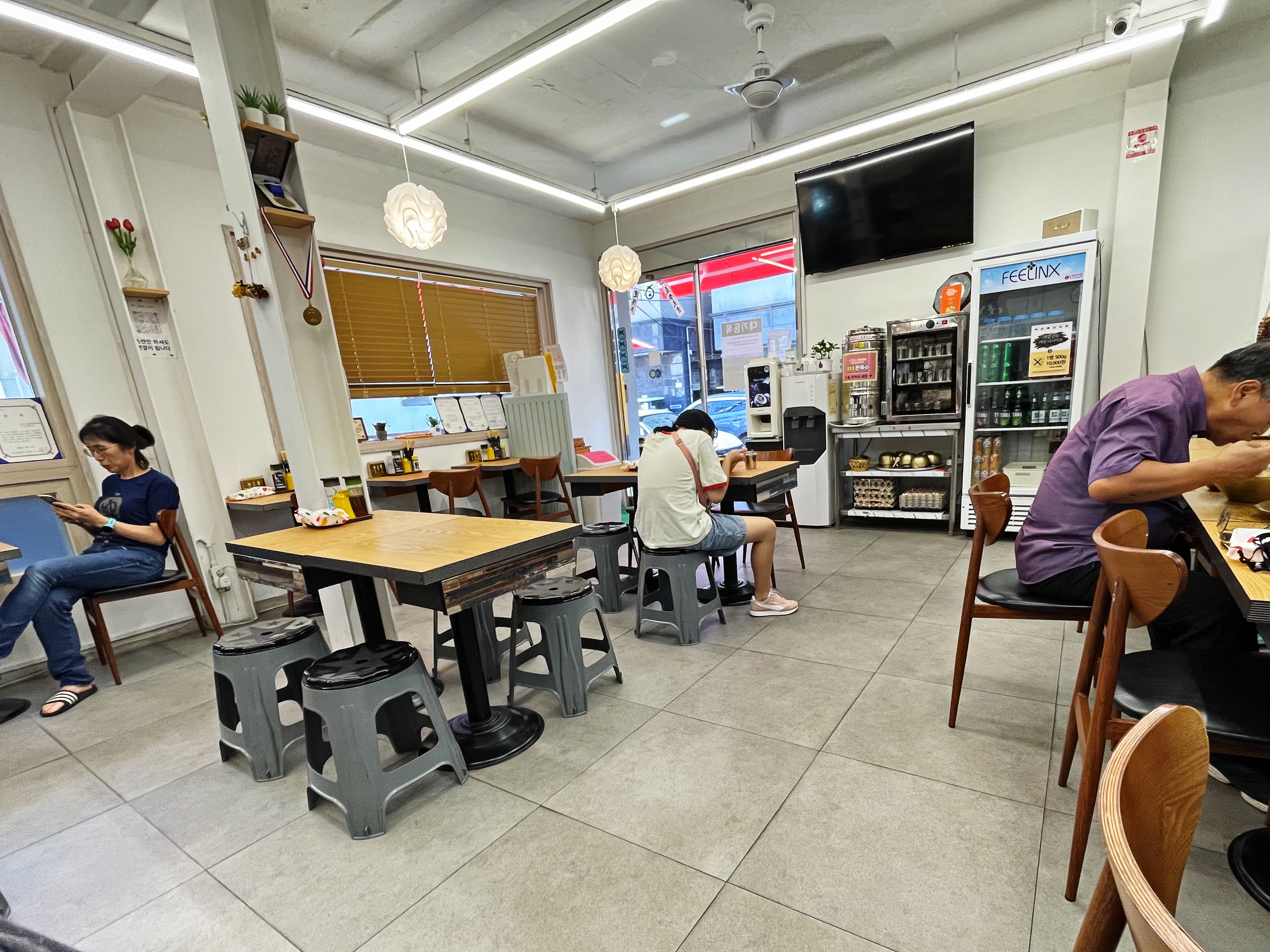 키오스크에서 주문과 결제를 먼저 마치고 자리에 앉으면 셀프로 뜨끈한 온육수와 물을 마실 수 있도록 되어 있었습니다.