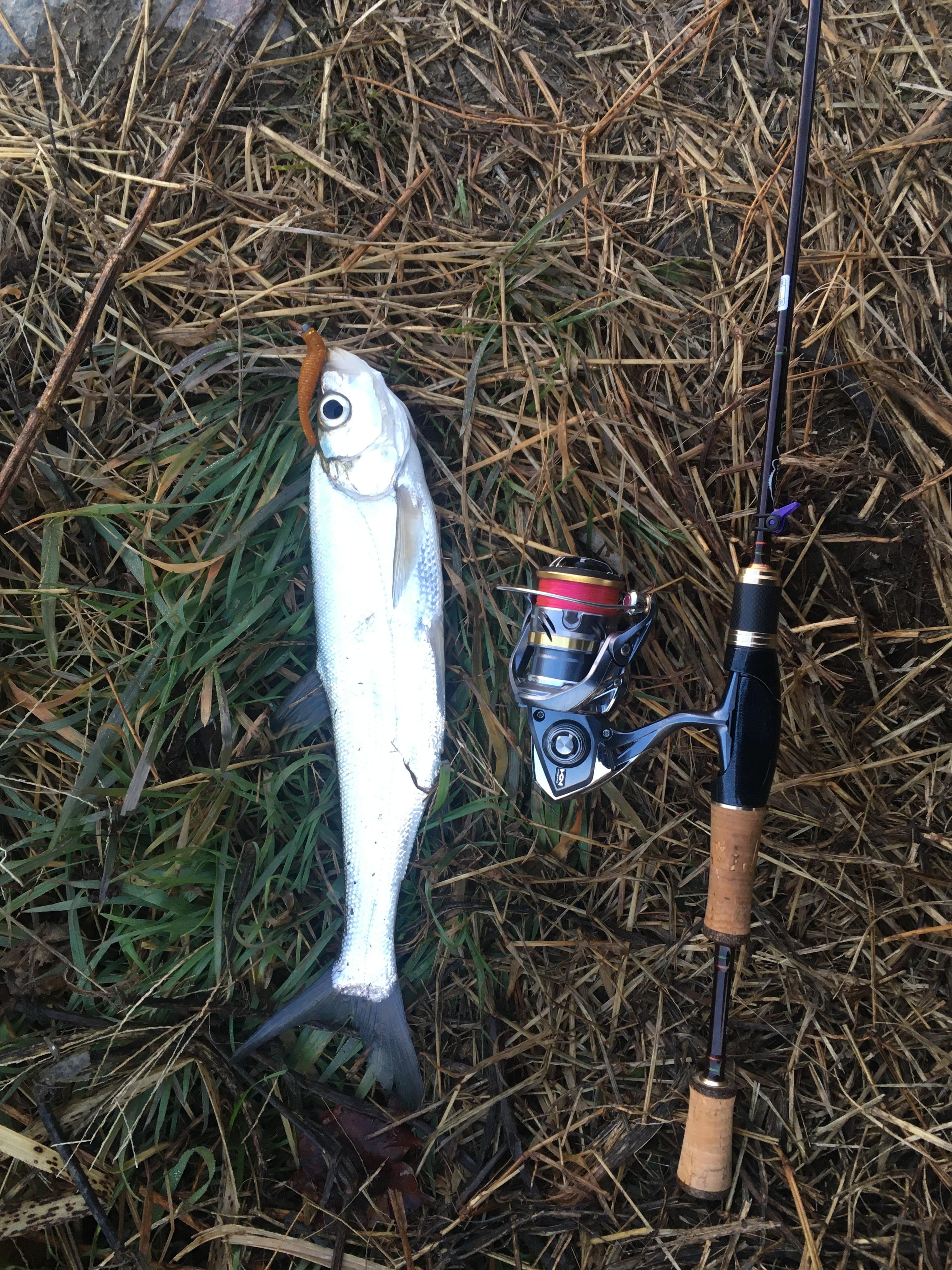 ULL 로드에 지그헤드 채비를 해서 쉐이킹 액션을 하고 있는데, 쭈욱 째길래 랜딩해보니 아담한 강준치 한 마리가 얼굴을 보여줍니다.