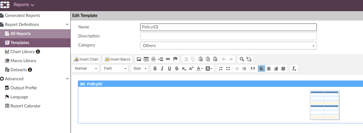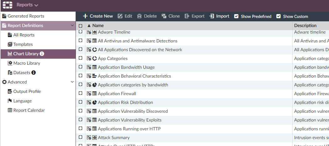 Reports > Report Definitions > Chart Library > Create New 를 통해 챠트 양식 생성
