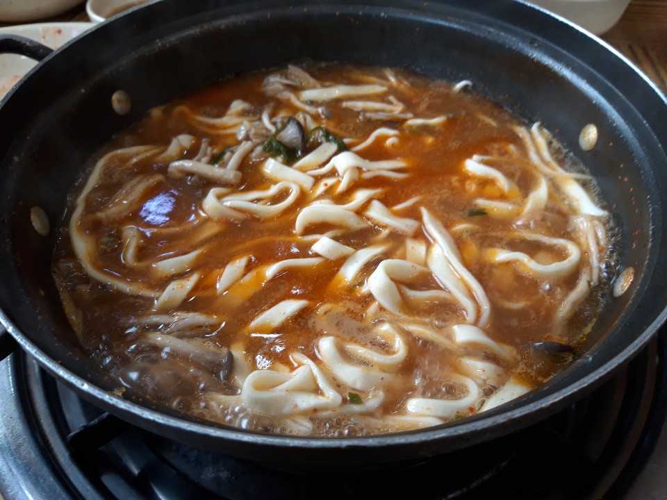 주문을 하니 전골냄비에 남아있던 국물과 건더기를 모두 옆에 있던 그릇에 옮겨 담고, 냄비만 들고 주방으로 가지고 가셨습니다.