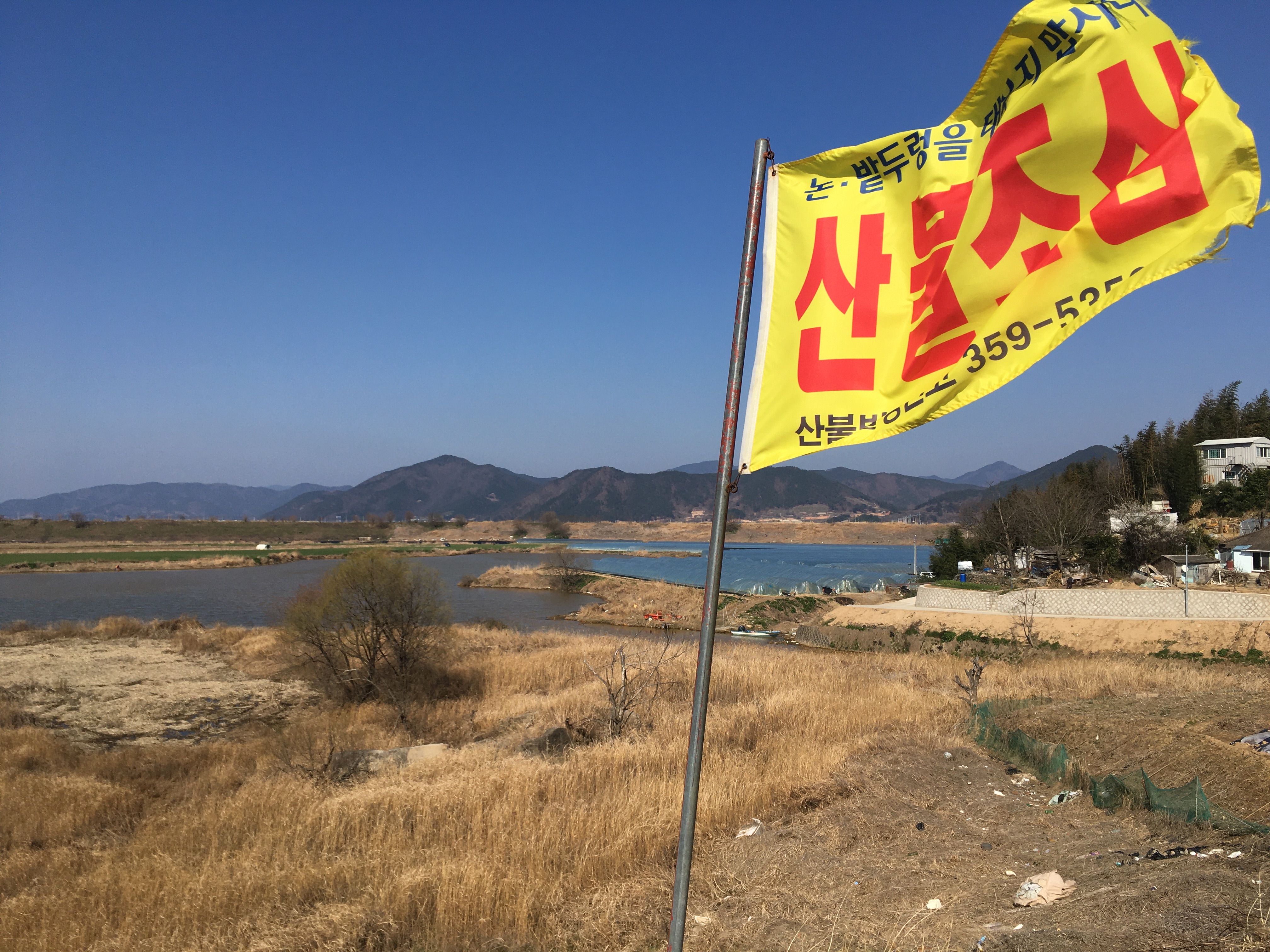 예전에 여기 옆에는 보리밭이었는데 지금은 모두 비닐하우스가 들어와 있습니다.