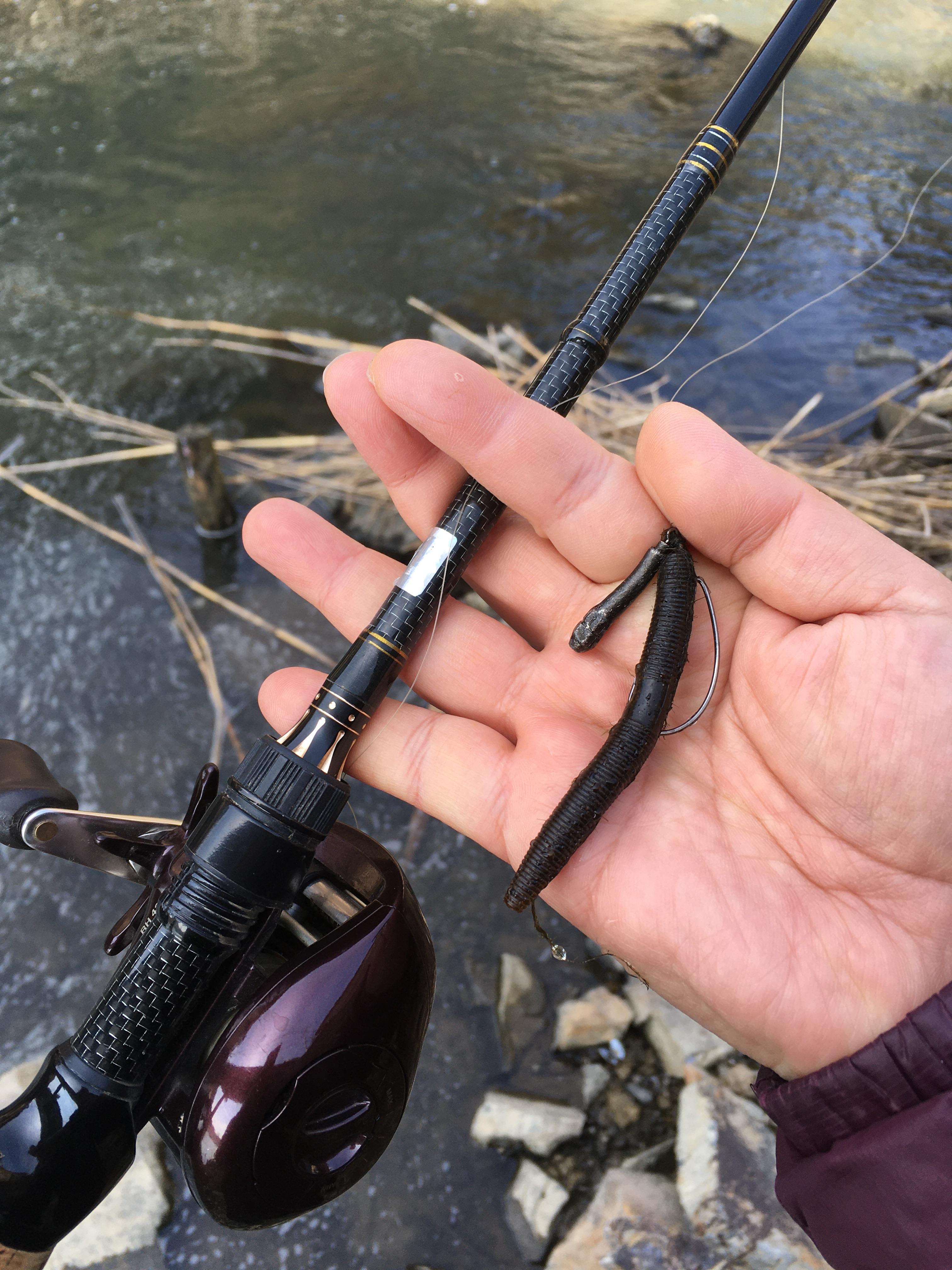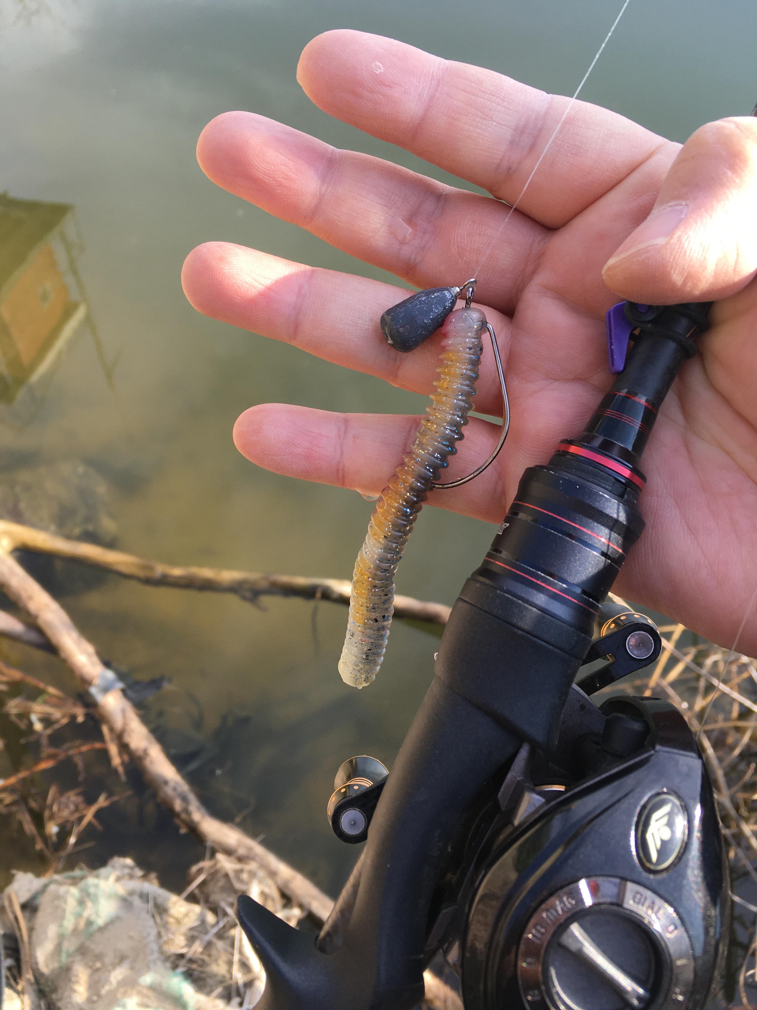 4인치 재블린에 가벼운 싱커를 채비해서 던졌는데 반응이 있네요.