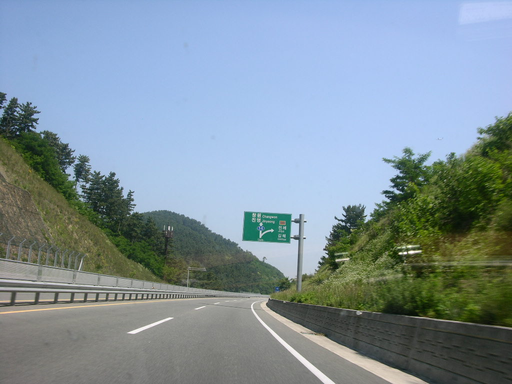 좌측으로 가면 진영을 지나 창원 동읍,소답동 쪽으로 이어지며, 조금 가다가 우측으로 새면.