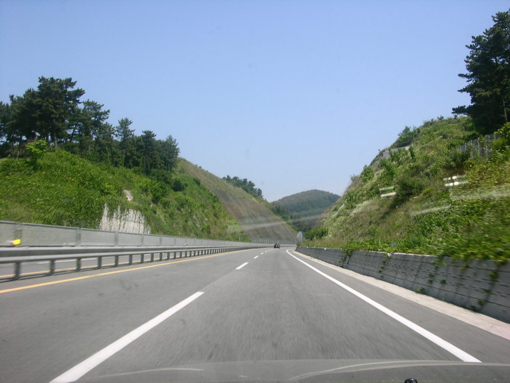 도로는 한적하고, 이동식 과속 단속도 하고 있고..ㅋㅋ