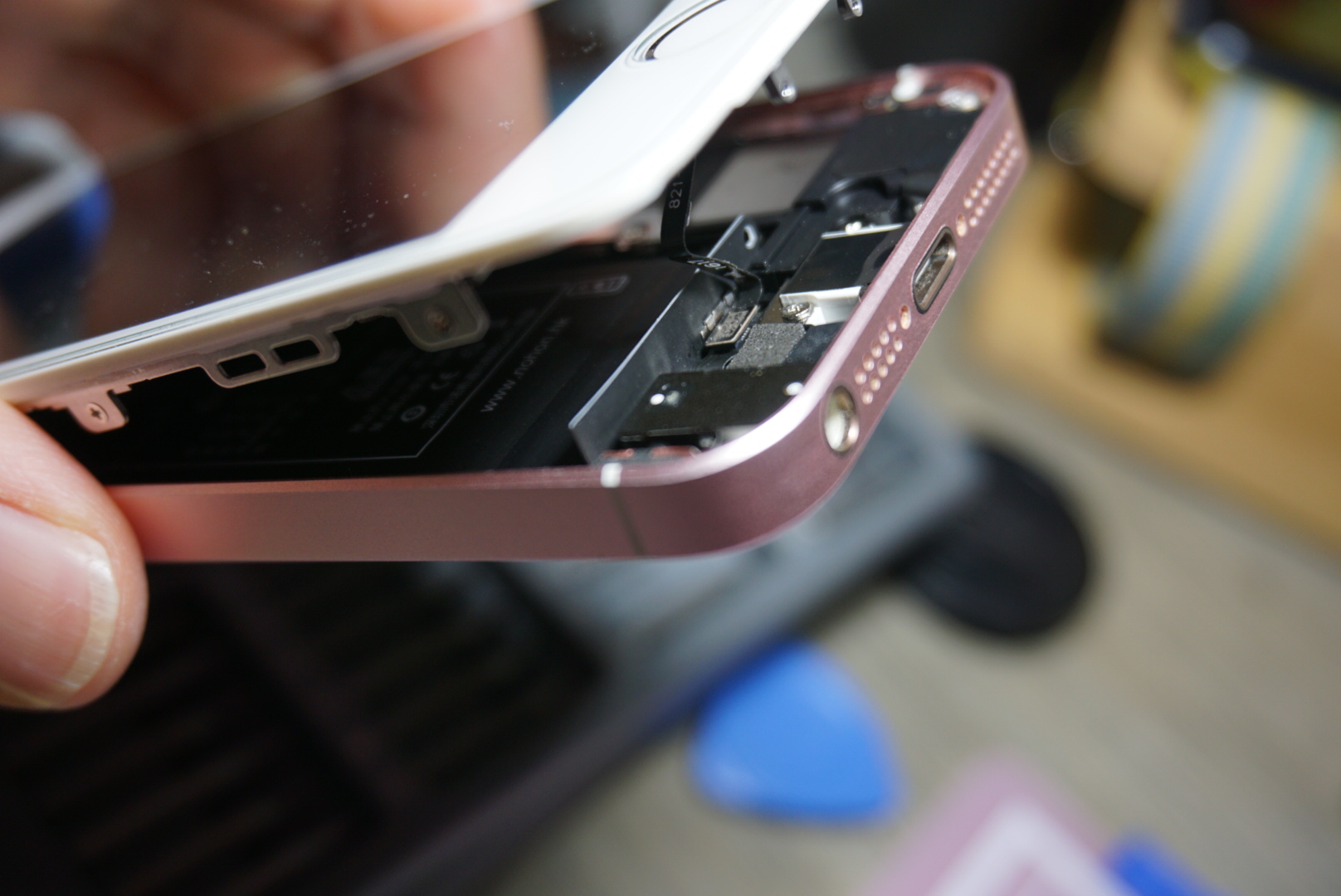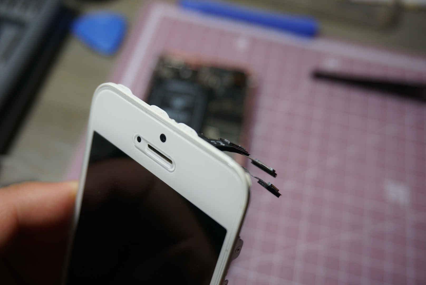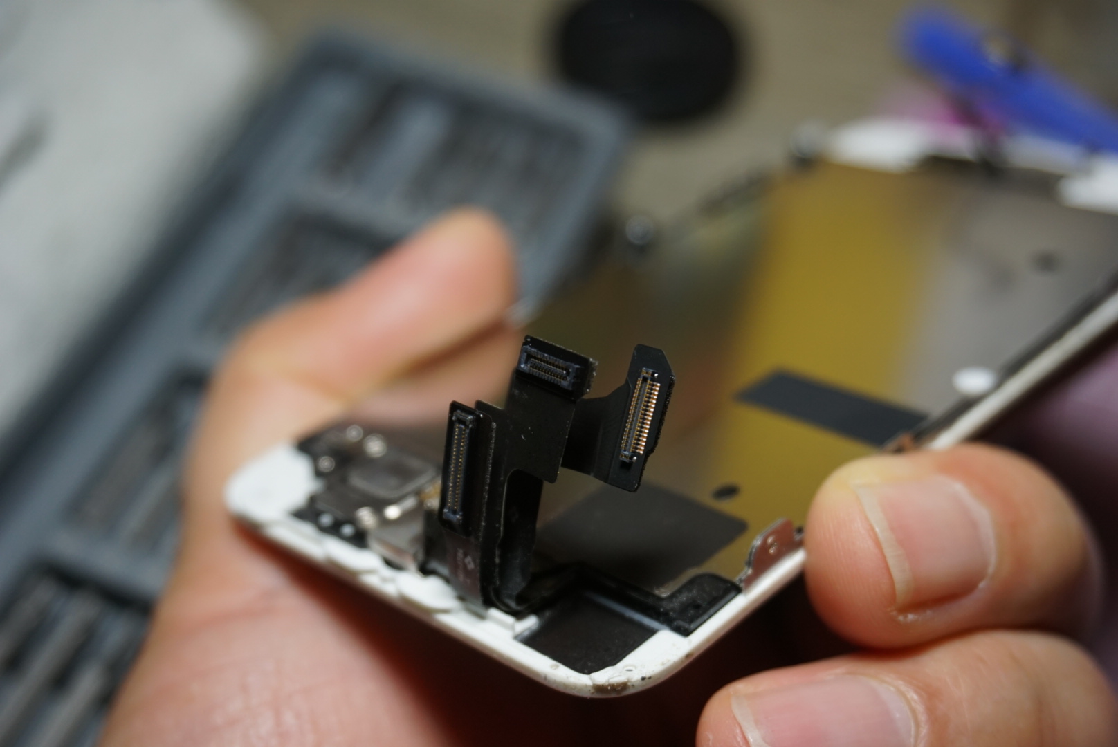 하단 지문인식 가능한 홈버튼이 연결된 케이블을 조심스레 분리합니다.