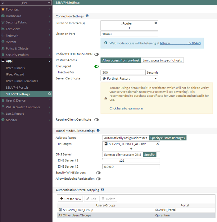 5. SSL VPN Setting 설정 (VPN > SSL-VPN Settings)