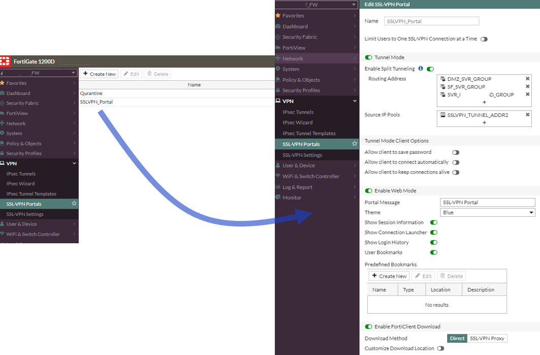 4. SSL VPN Portals 설정 (VPN > SSL-VPN Portals)