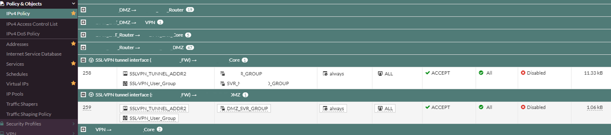 6. Policy 설정 (Policy & Objects > IPv4 Policy)