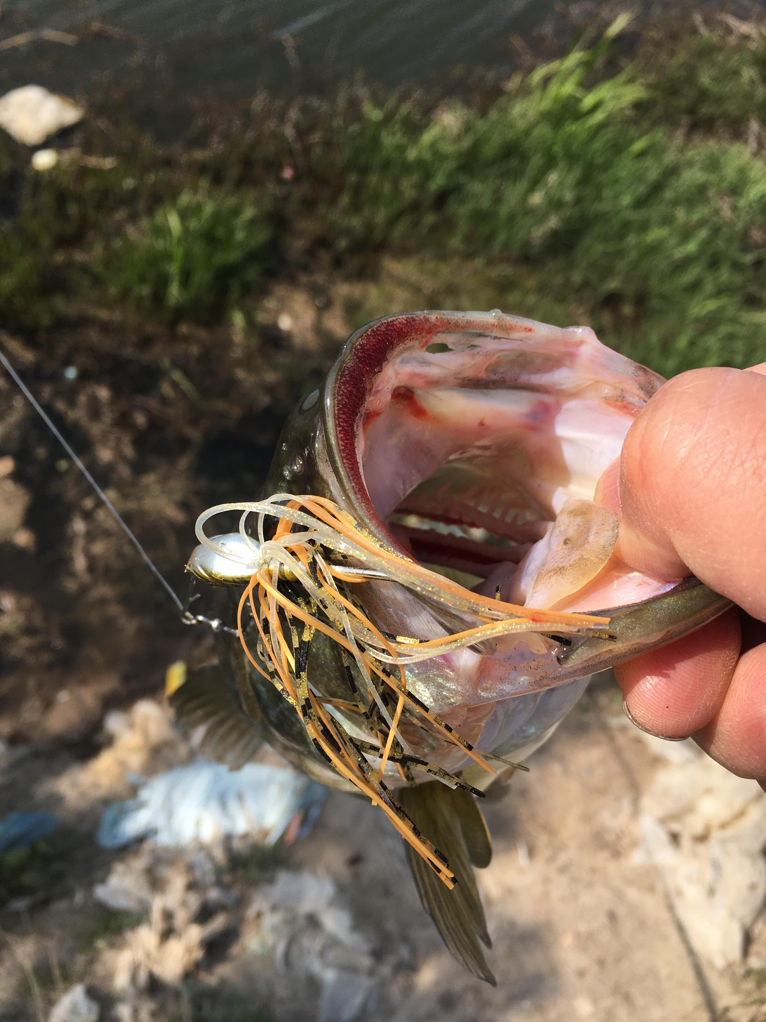 위 사진에 보이는 곳에 채비를 넣자 마자 한 마리가 수초 사이에서 튀어나와 루어를 물고는 순식간에 돌아서서 수초를 감아 버렸습니다.