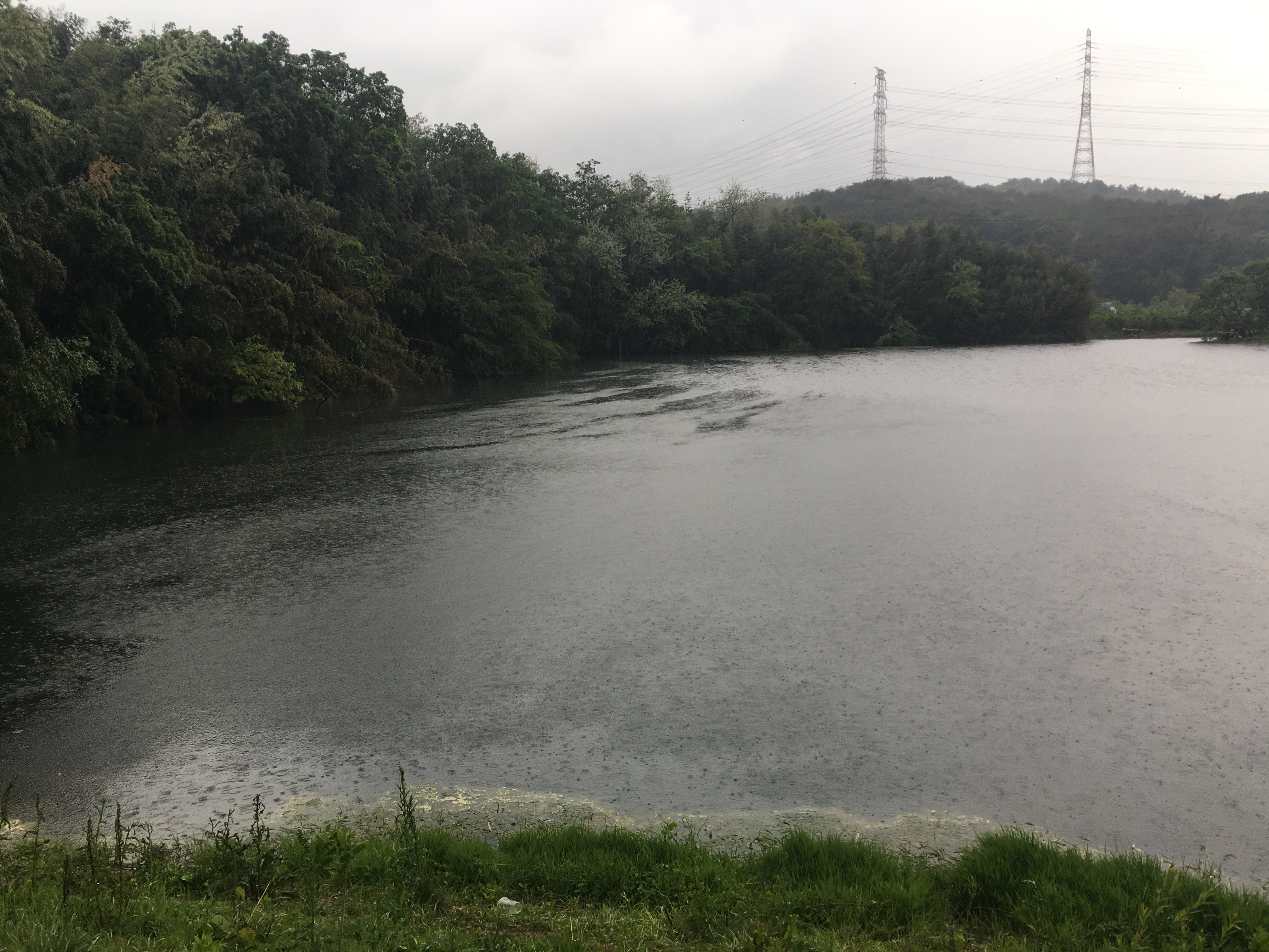 차에 보니 예전에 사놓은 우비가 있어 우비와 허벅장화 패션으로 집 가까운 소류지에 가보았습니다.