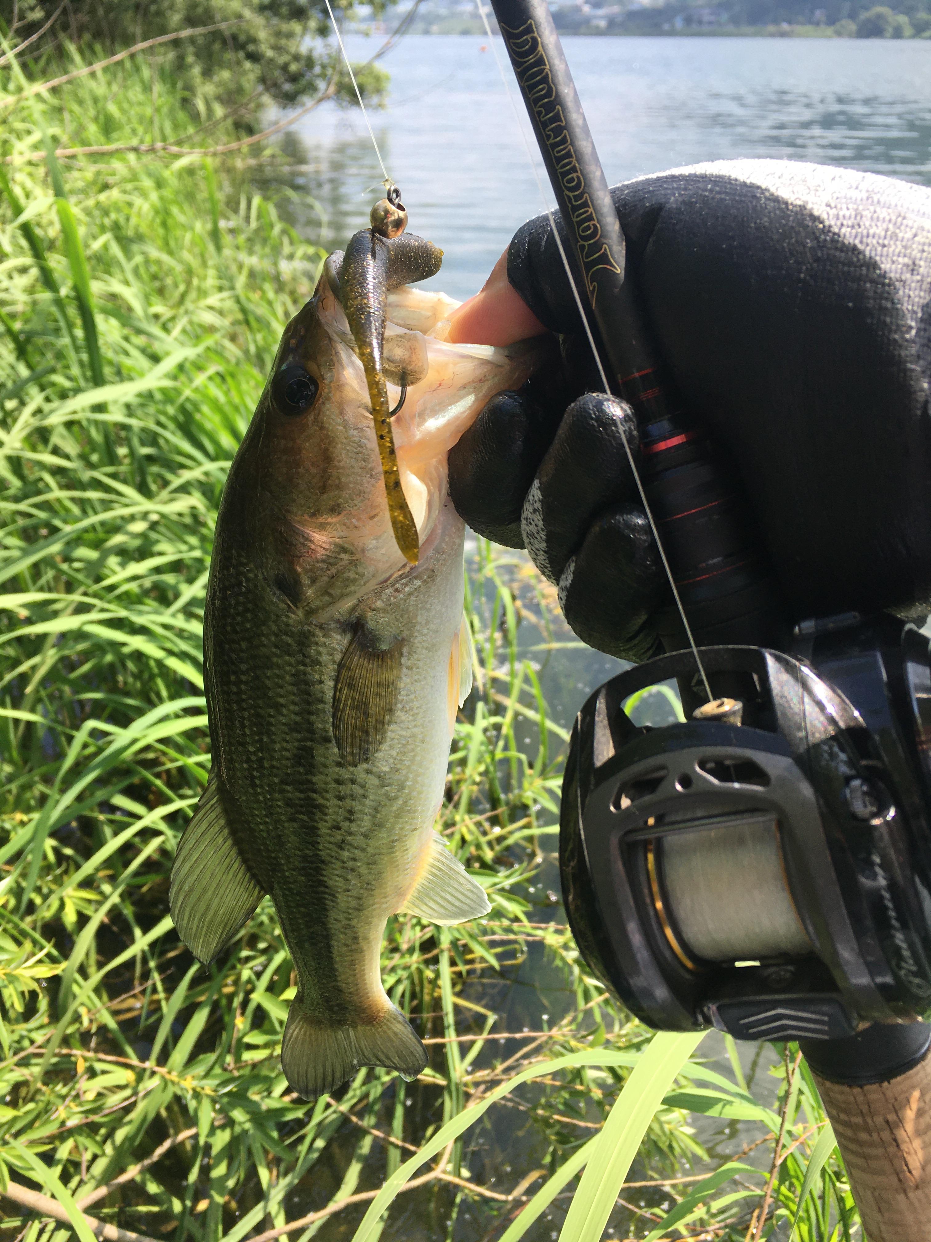 비스듬히 대각선으로 캐스팅하여 수초 사이사이에 숨어 있을 녀석만 노렸습니다.