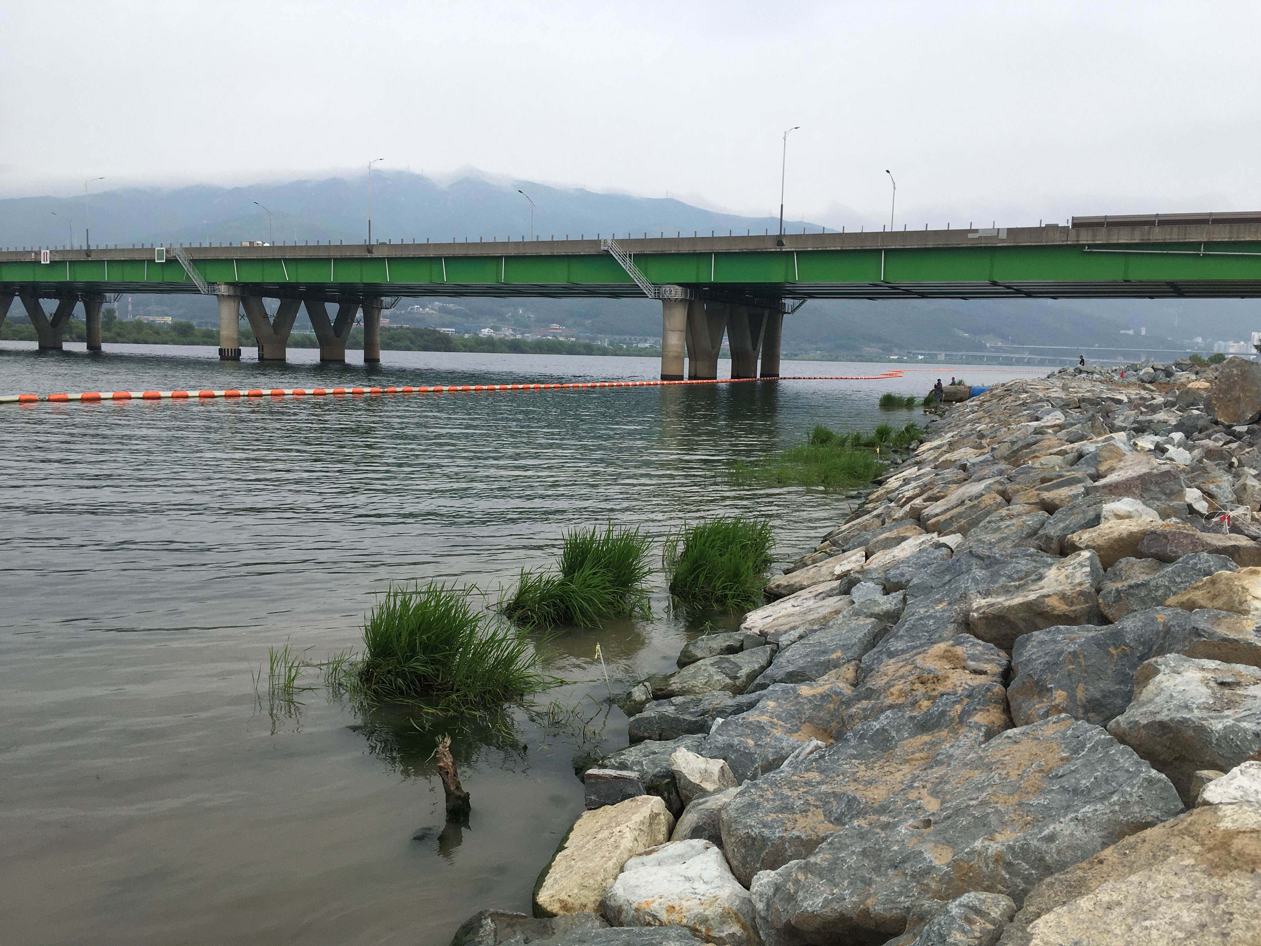 부산 방향으로 조금 들어가 보니 던질 만한 곳은 조금 나오는데 연안에 그물이 쳐져 있어 캐스팅 하기가 어려워 반대편 밀양 방향으로 탐색을 해 보았습니다.
