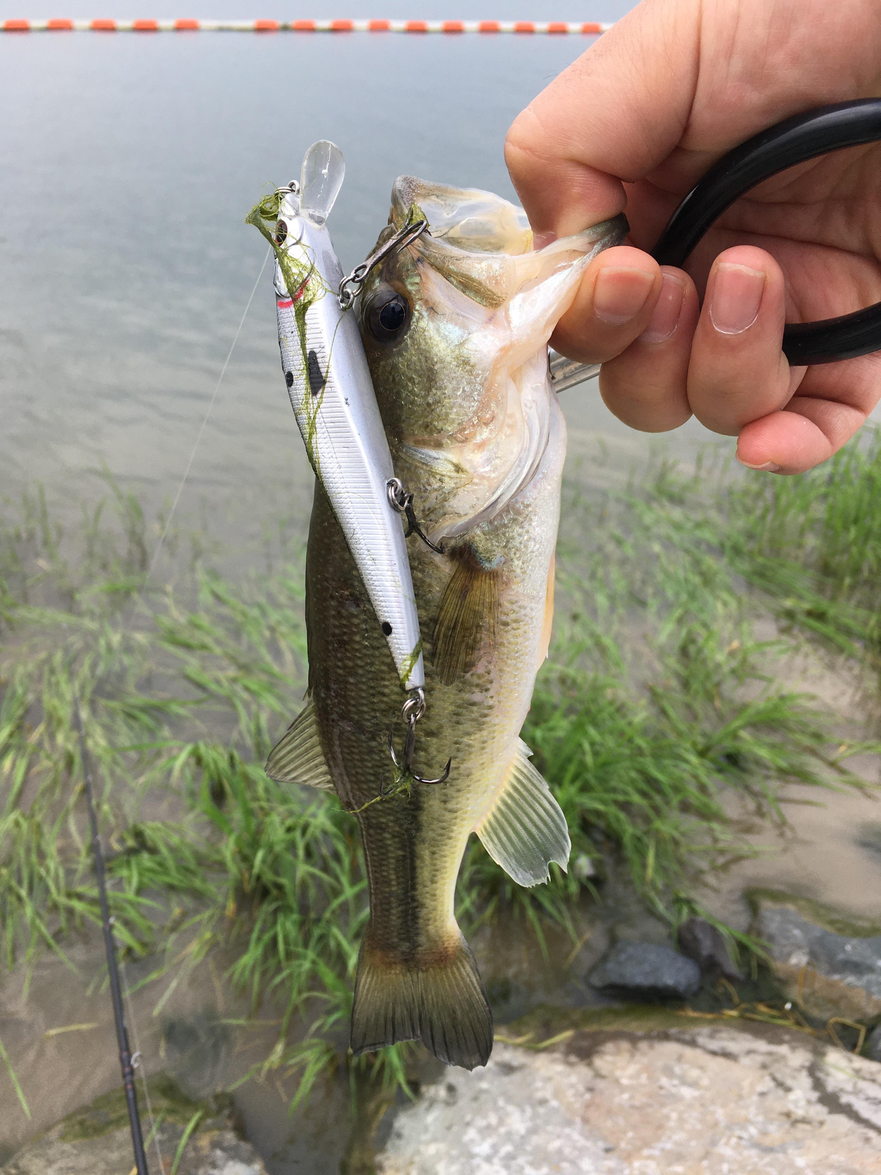 110사이즈의 미노우에 수초에서 작은 녀석이 얼굴을 보여줍니다.