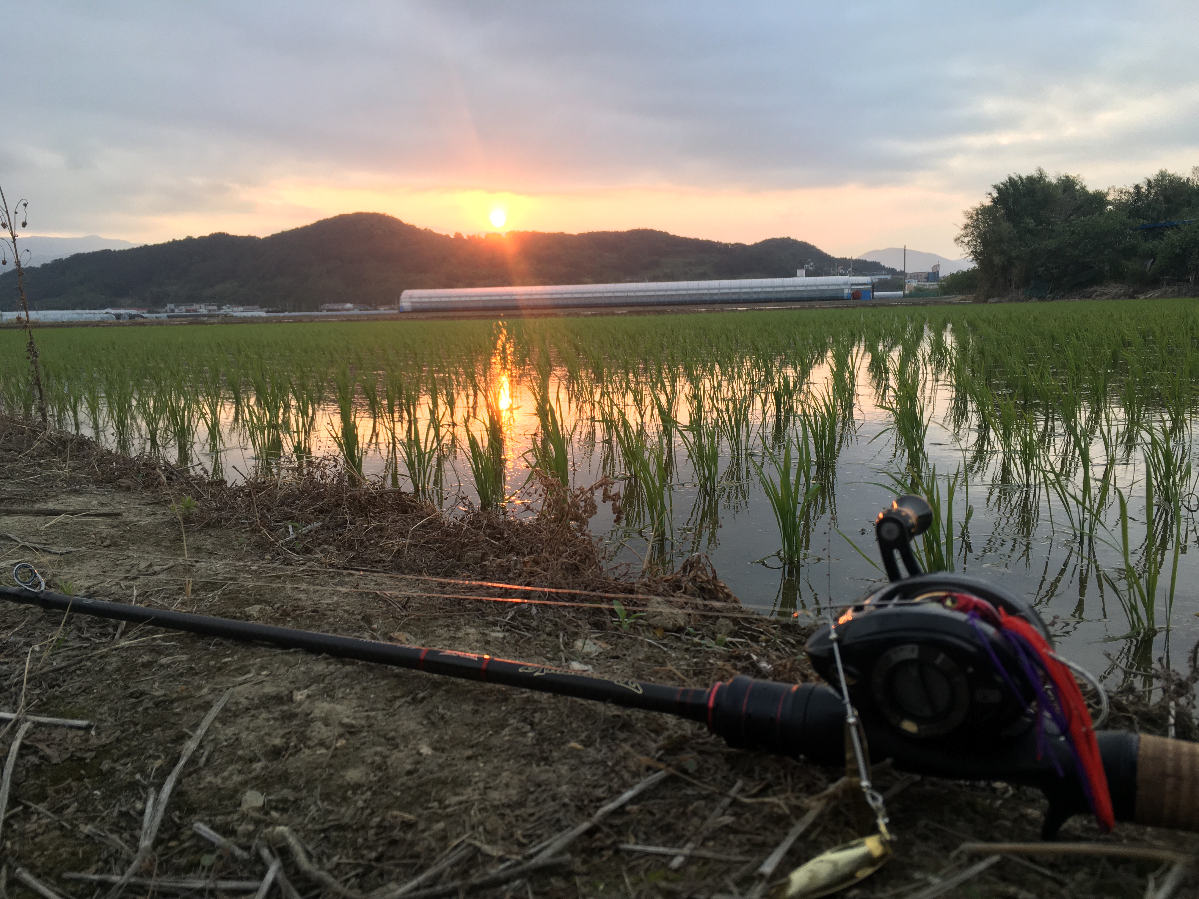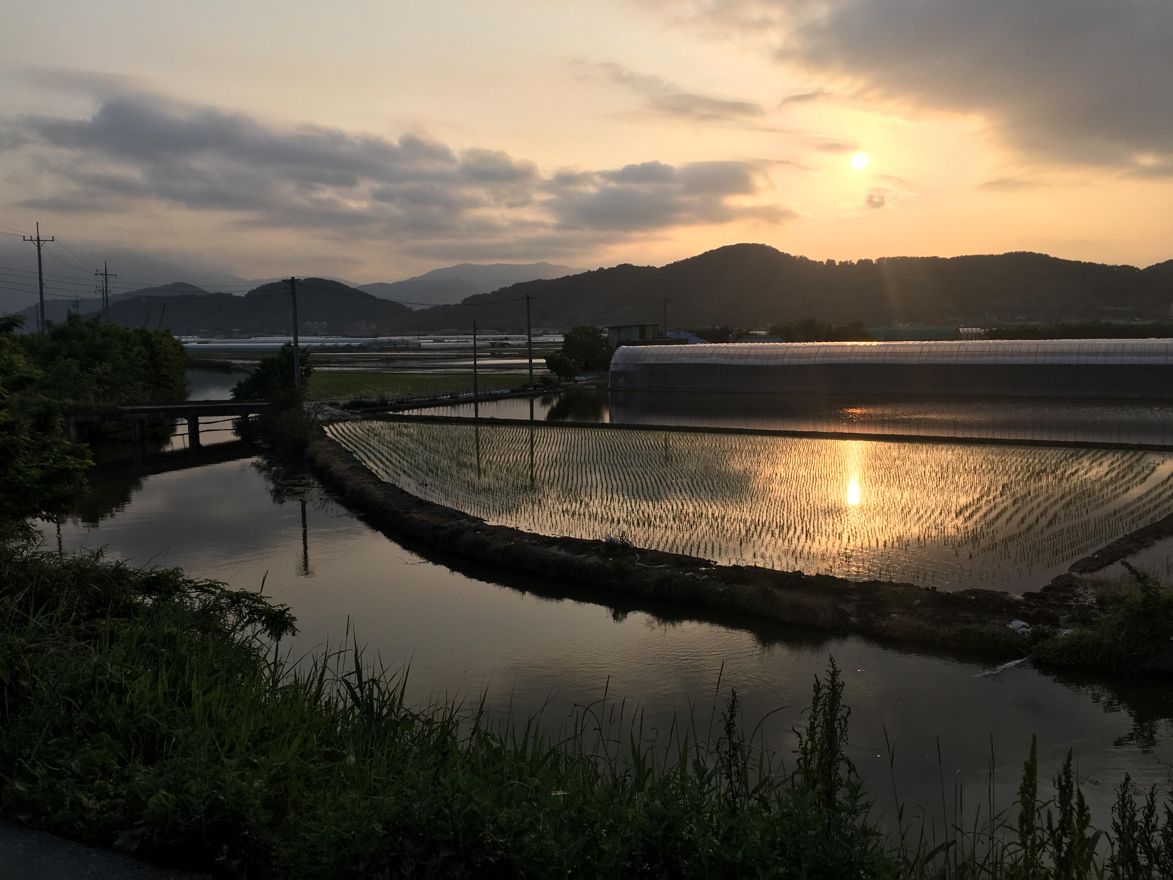 그래서 그냥 석양이 예뻐 모내기 끝난 논을 배경으로 사진이나 담아봅니다.