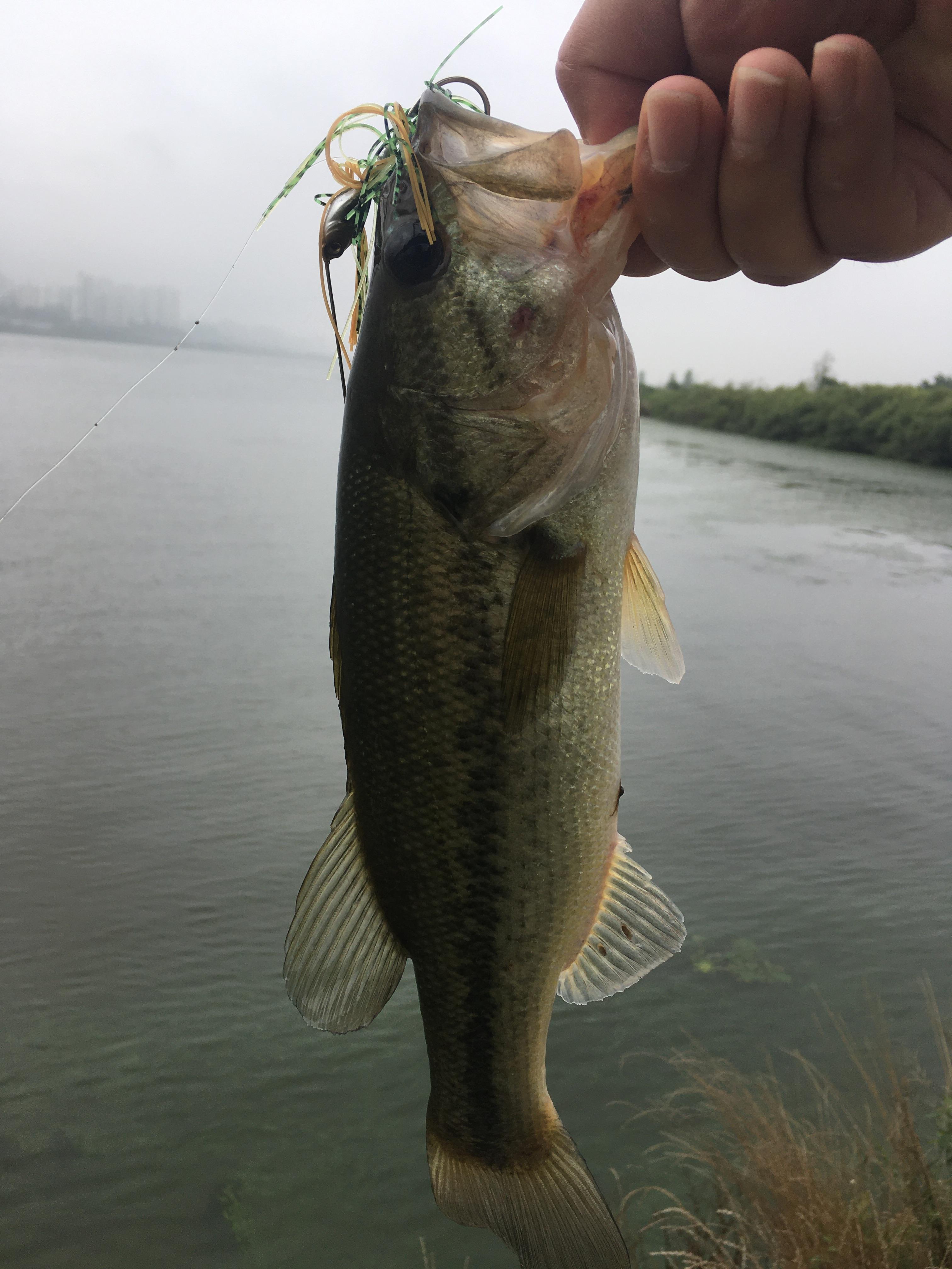 발 앞에서 금붕어 사이즈 배스가 걸렸는데 훅이 아가미 바깥쪽으로 들어가 배를 관통해 나왔는데 다행히 큰 상처없이 보내줬습니다.
