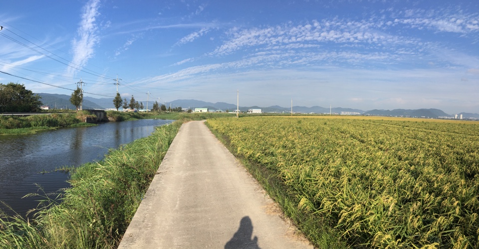 아침 일찍 나온 보람이 있게 하늘도 이쁘고 논에 나락도 무르익어갑니다.