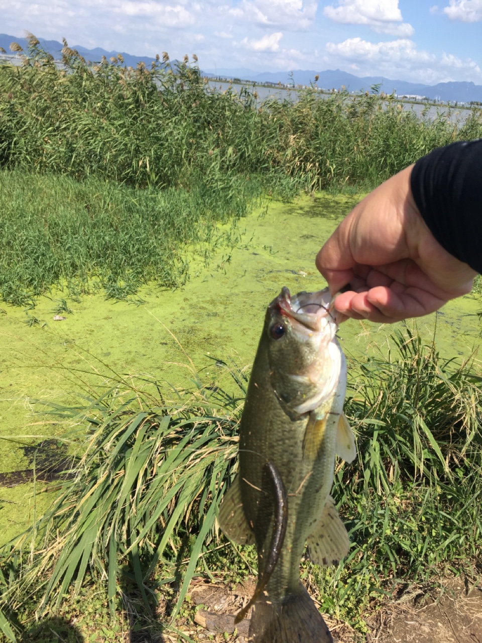 개구리밥이 보여 재블린 노싱커 채비로 살살 긁어오니 한마리가 또 나와주네요.