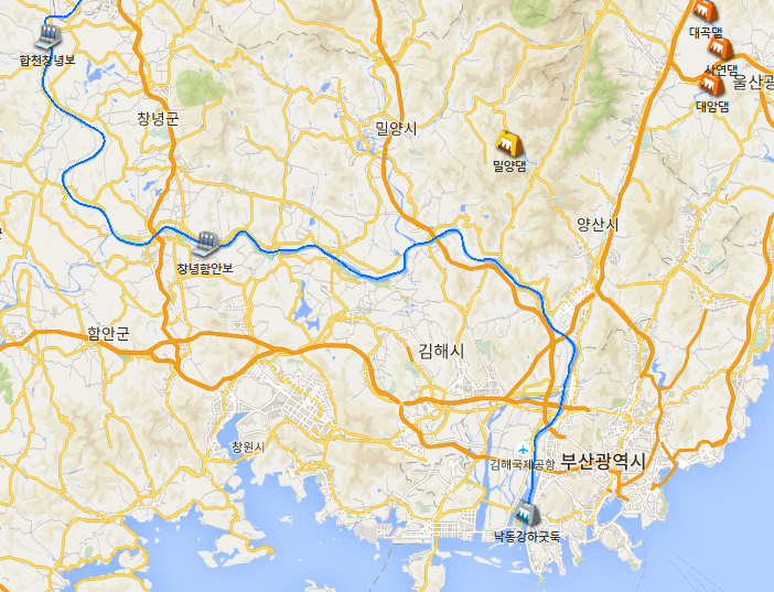낙동강의 경우 합천창녕보 - 창녕함안보 - 낙동강하굿둑으로 이어져 있기 때문에,