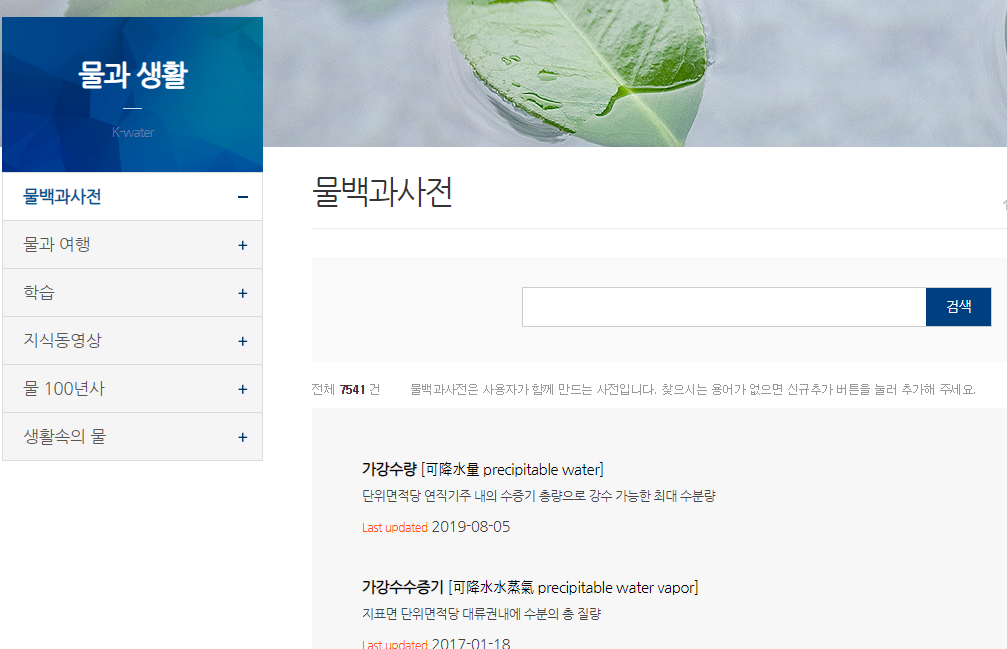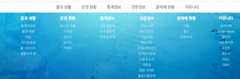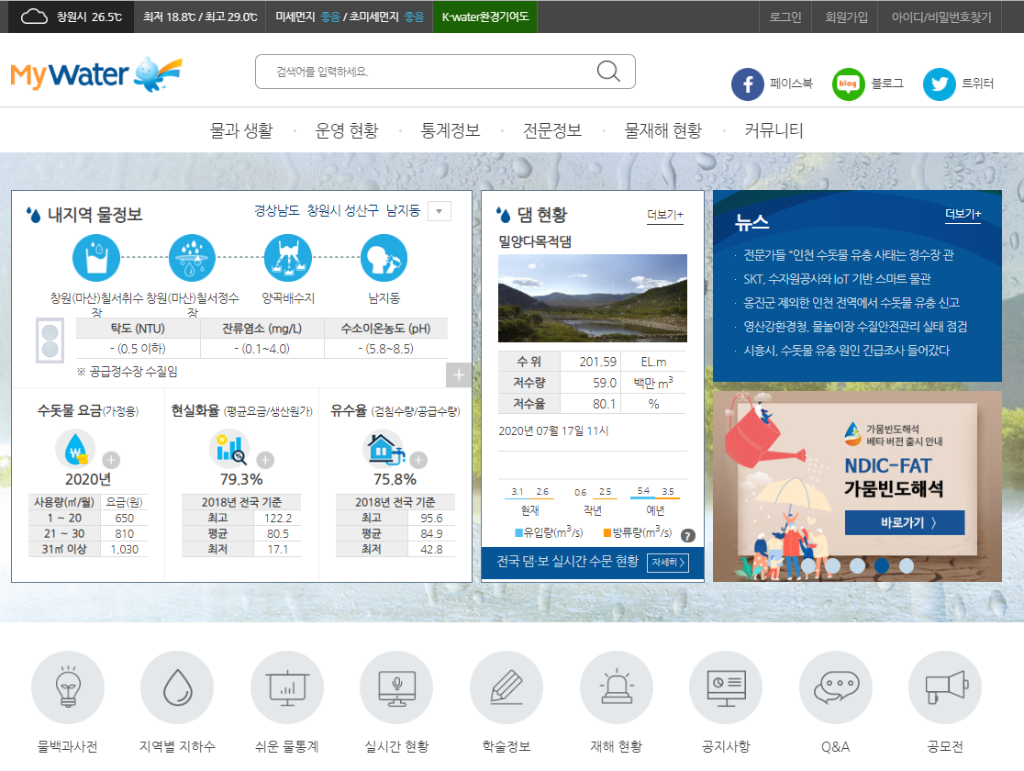 우리가 먹는 수돗물의 염소 및 수소이온농도, 재해현황, 통계정보 등 다양한 정보를 제공하고 있으니,