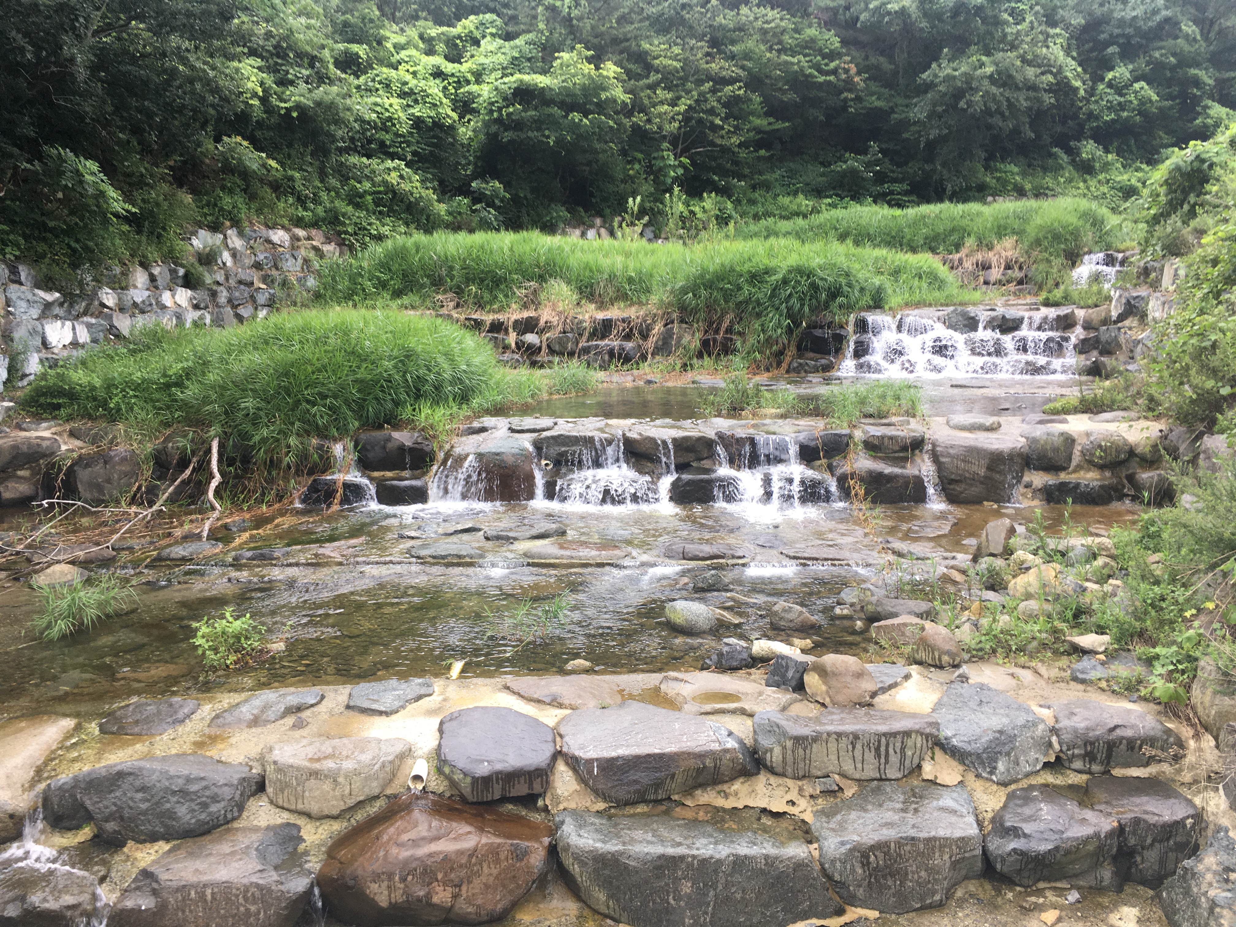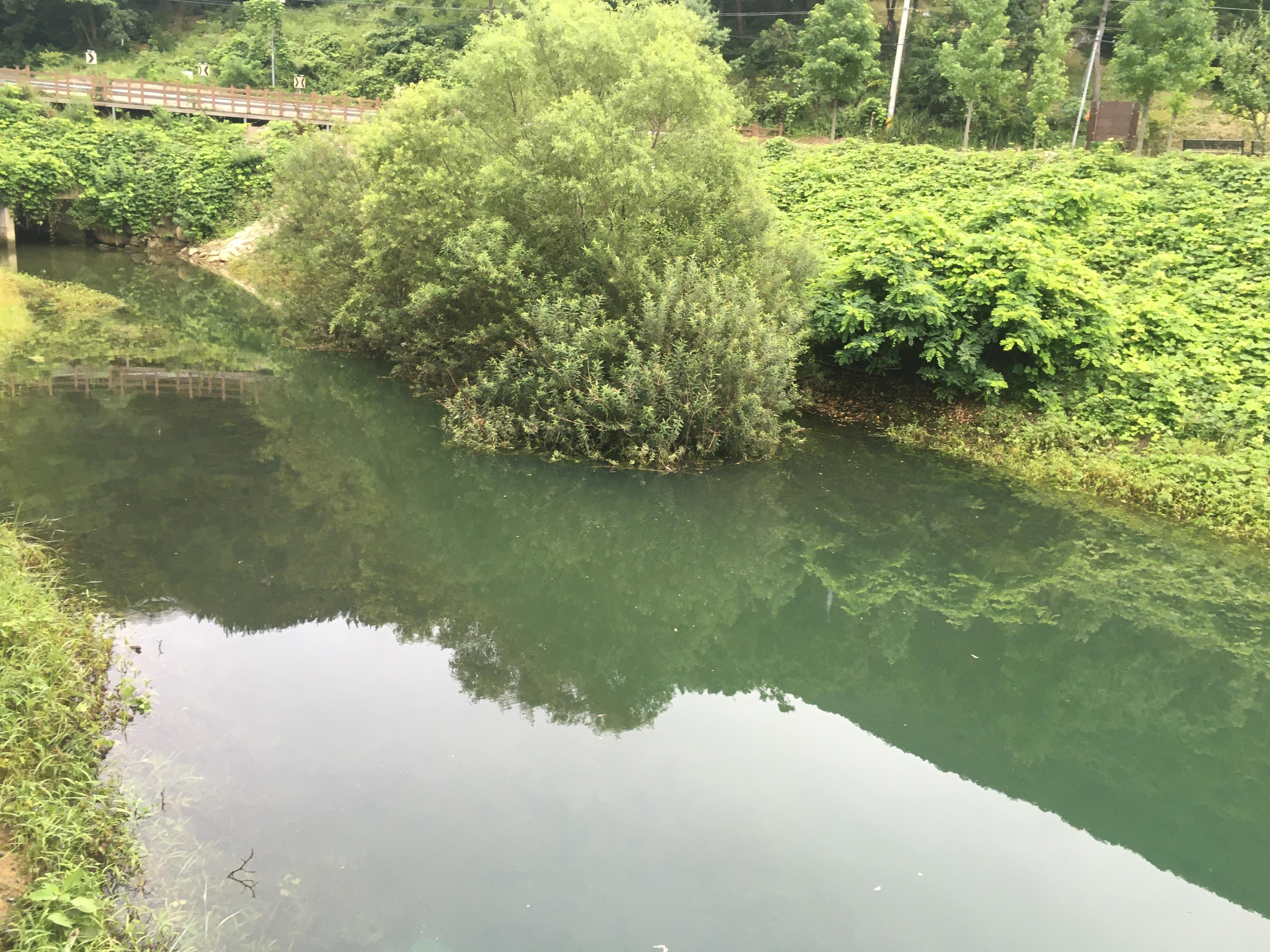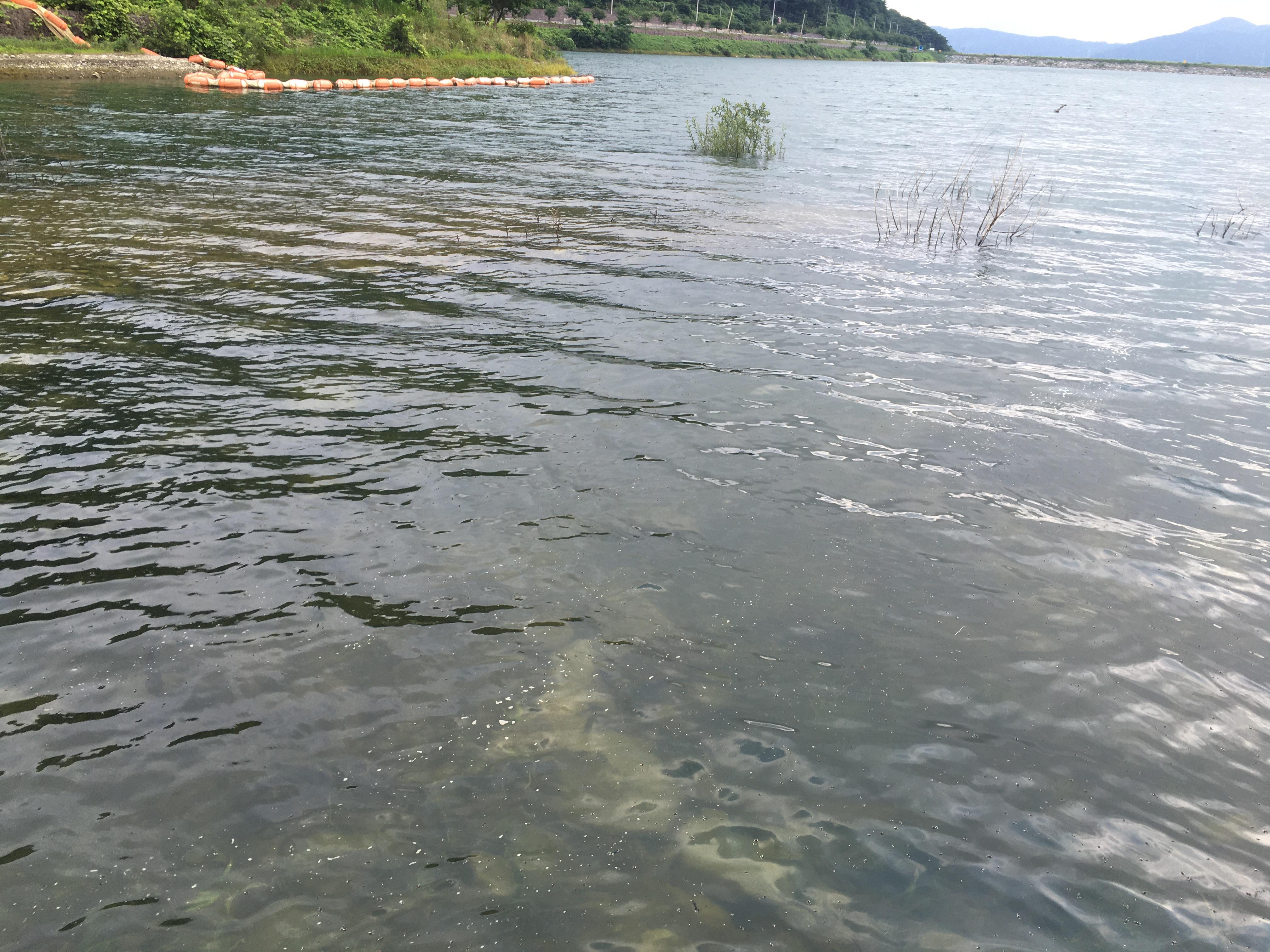 상류에는 이렇게 물이 내려오고 있어 수온을 떨어뜨리고 있어 애들이 좀 더 깊은 곳으로 들어가지 않았을까? 라는 생각이 들어 직벽구간이나 제방쪽을 좀 더 던져볼까? 고민했지만..