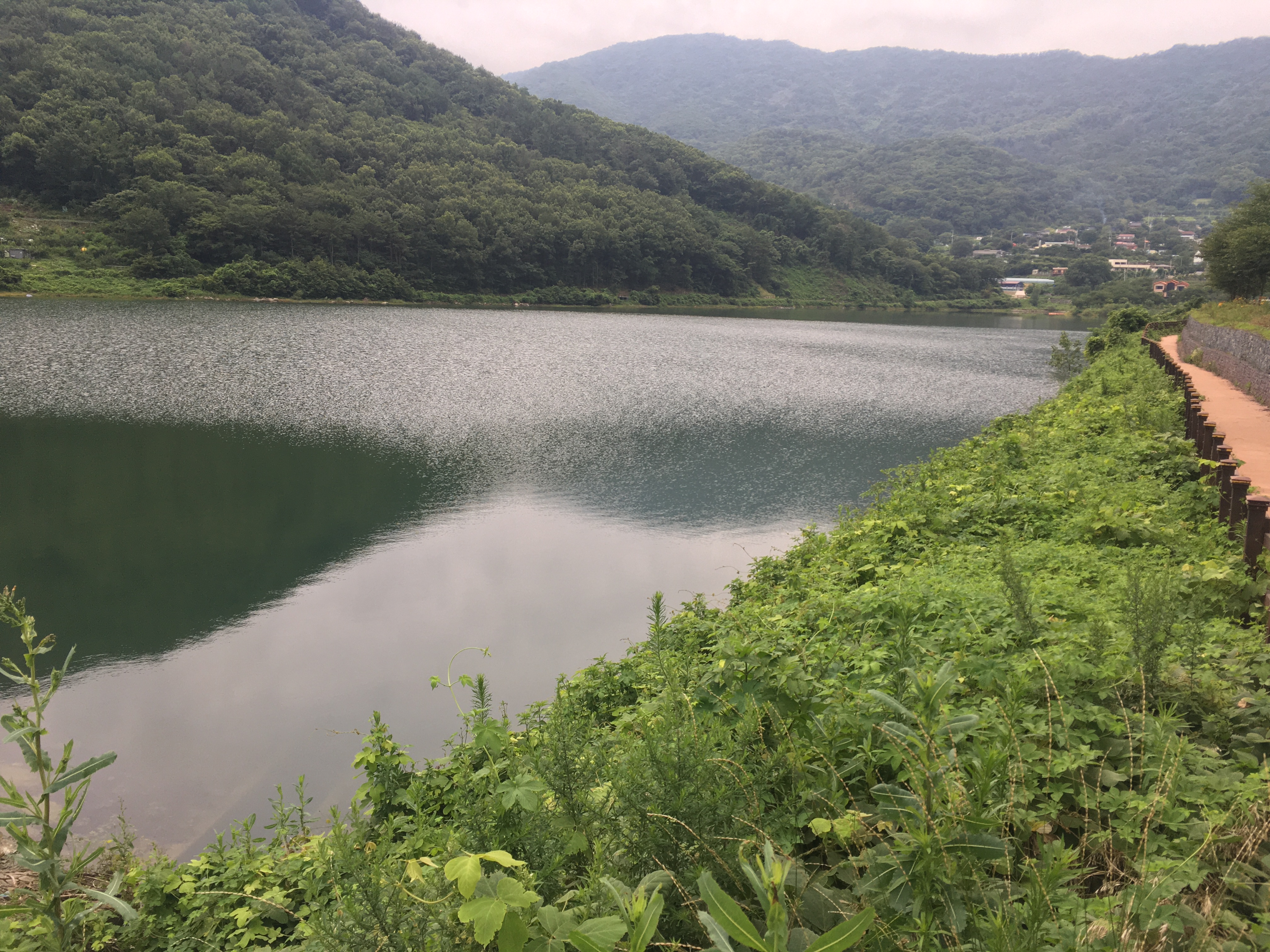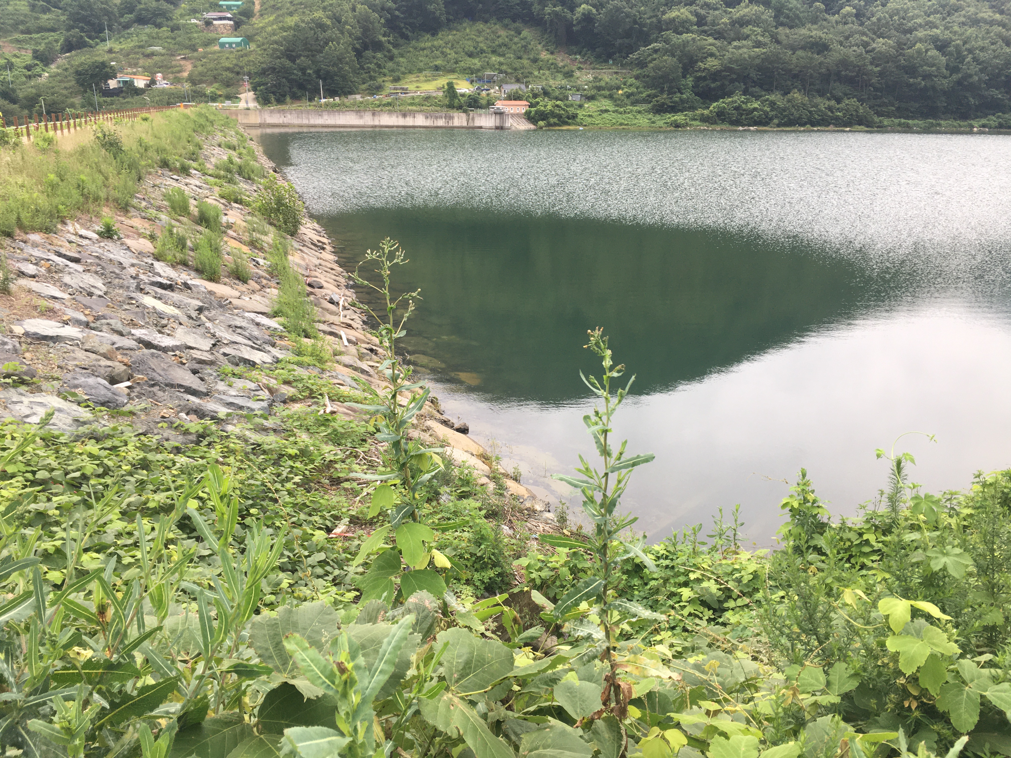 제방쪽은 물이 요정도 찼네요.