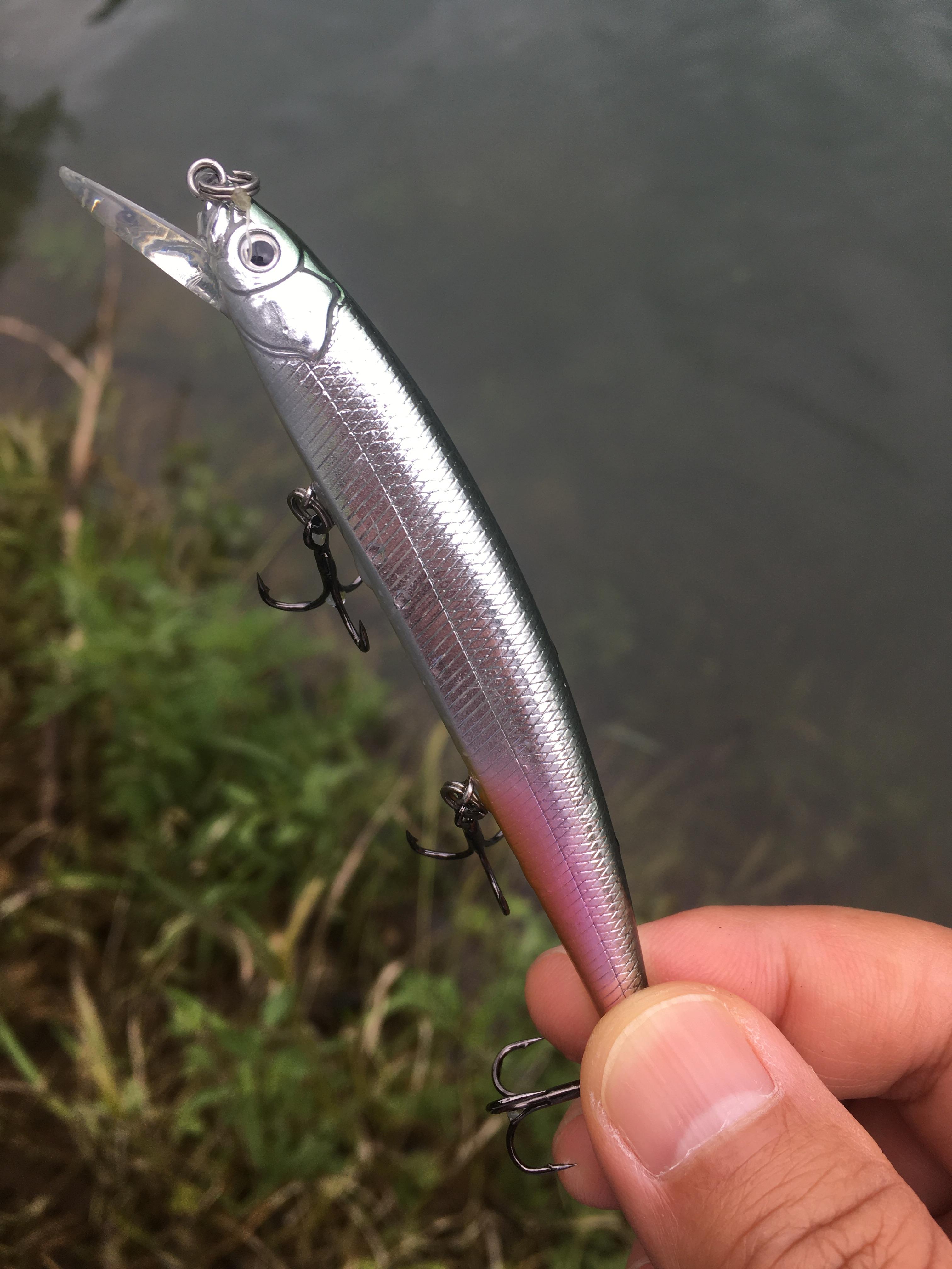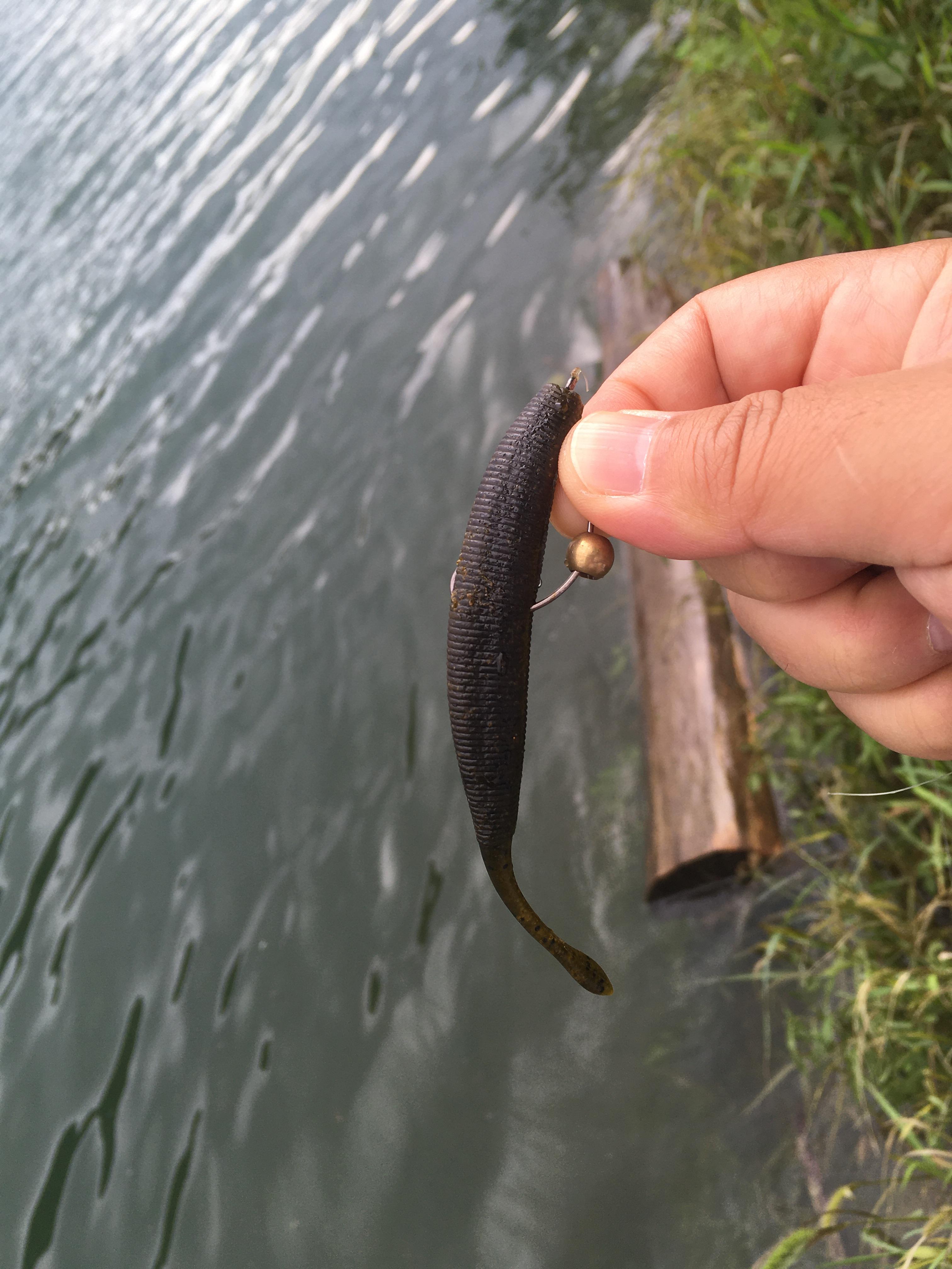 미노우보다 조금 큰 새끼배스가 드디어 한 마리 나왔습니다.