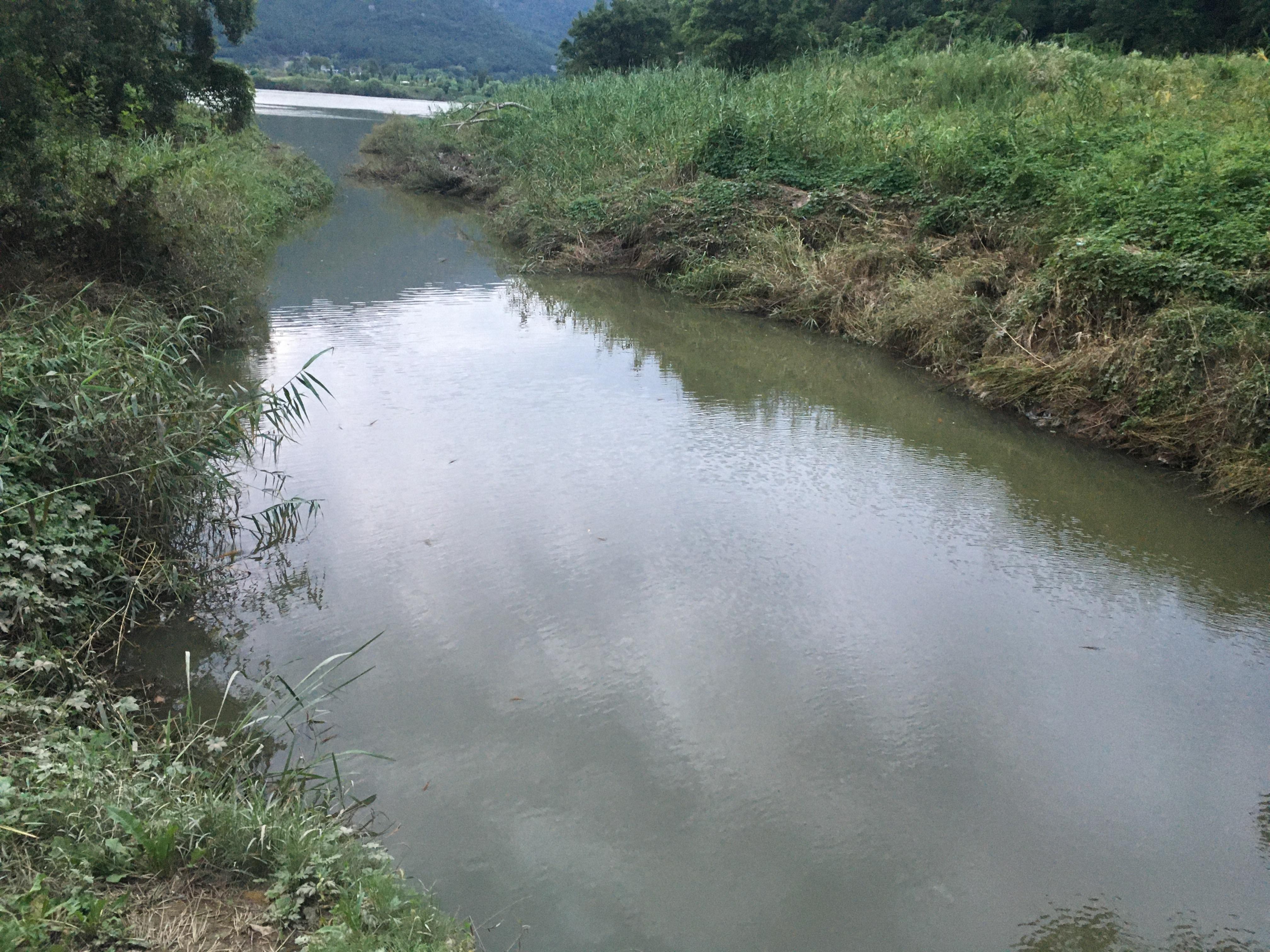 계속되는 장맛비로 흙이 많이 쓸려 왔는지 수로 입구쪽 연안에는 모래밭이 넓게 펼쳐져 있습니다.