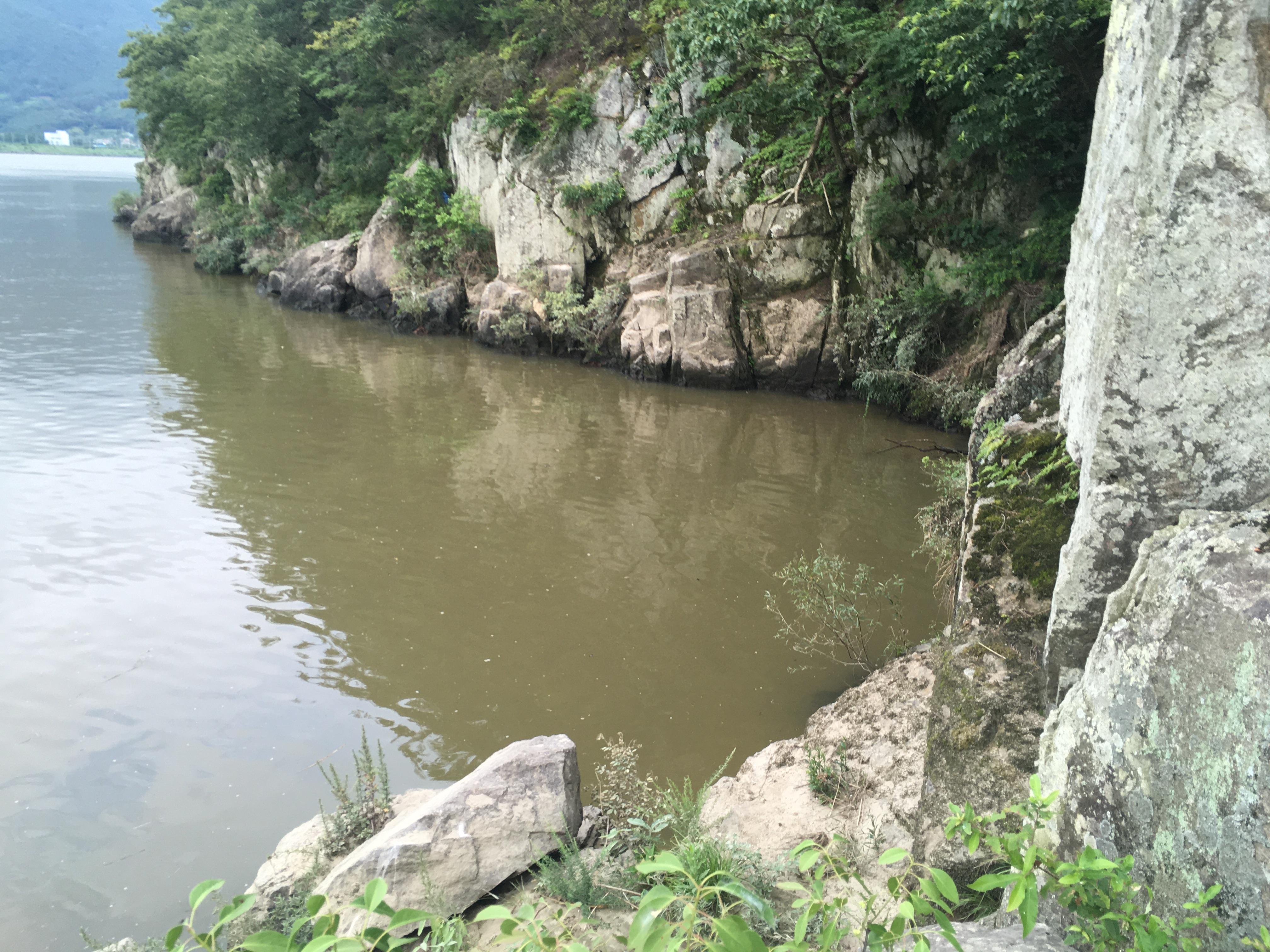 저 아래 수로 오른편으로 풀숲을 헤치고 진입하려다 발판이 좋지 않아 저~ 뒤에 보이는 직벽구간부터 확인해 보았습니다.