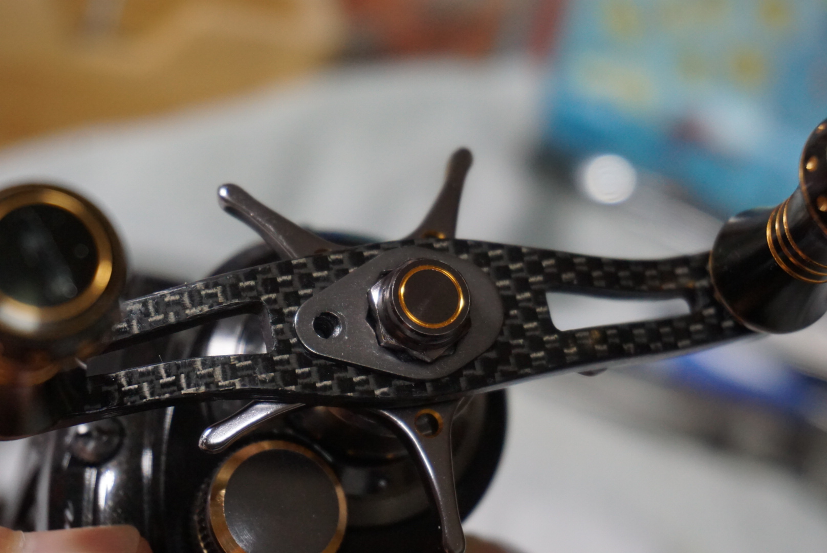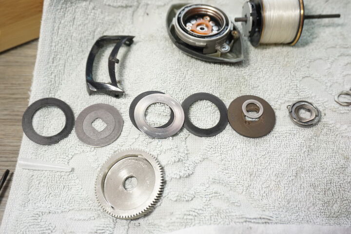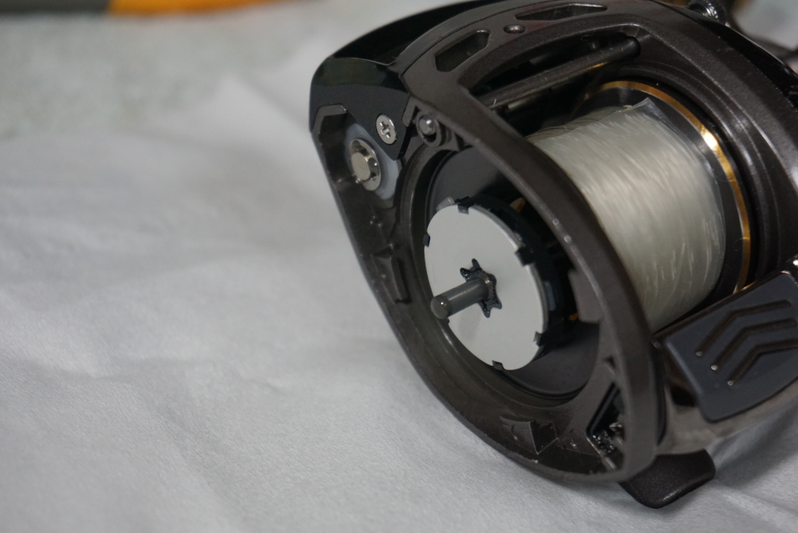 조~기 스풀 좌측에 있는 틈 사이에 원심브레이크 슈가 들어 있습니다.