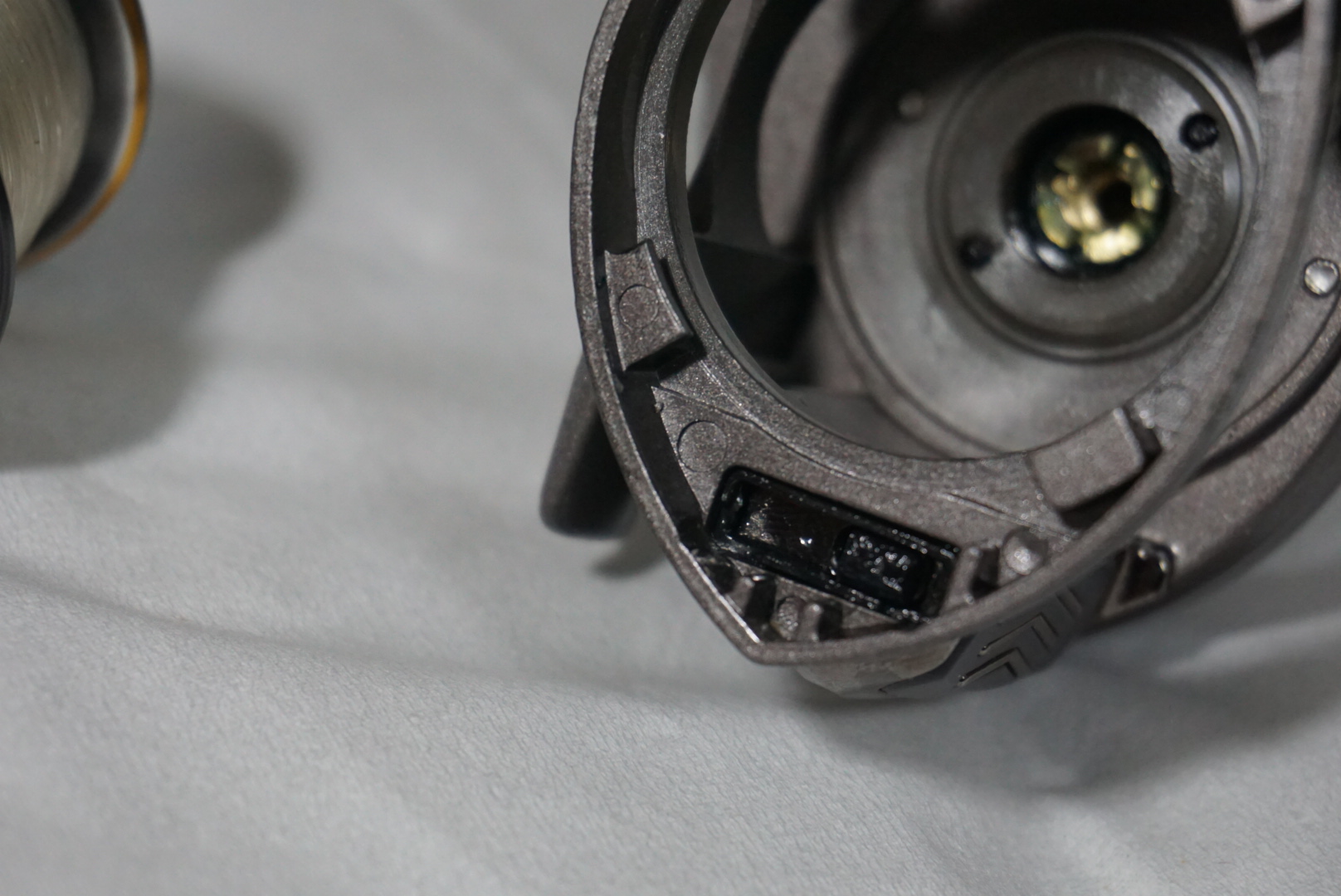 스풀 끝부분에도 오일이 살짝 묻어 있구요.