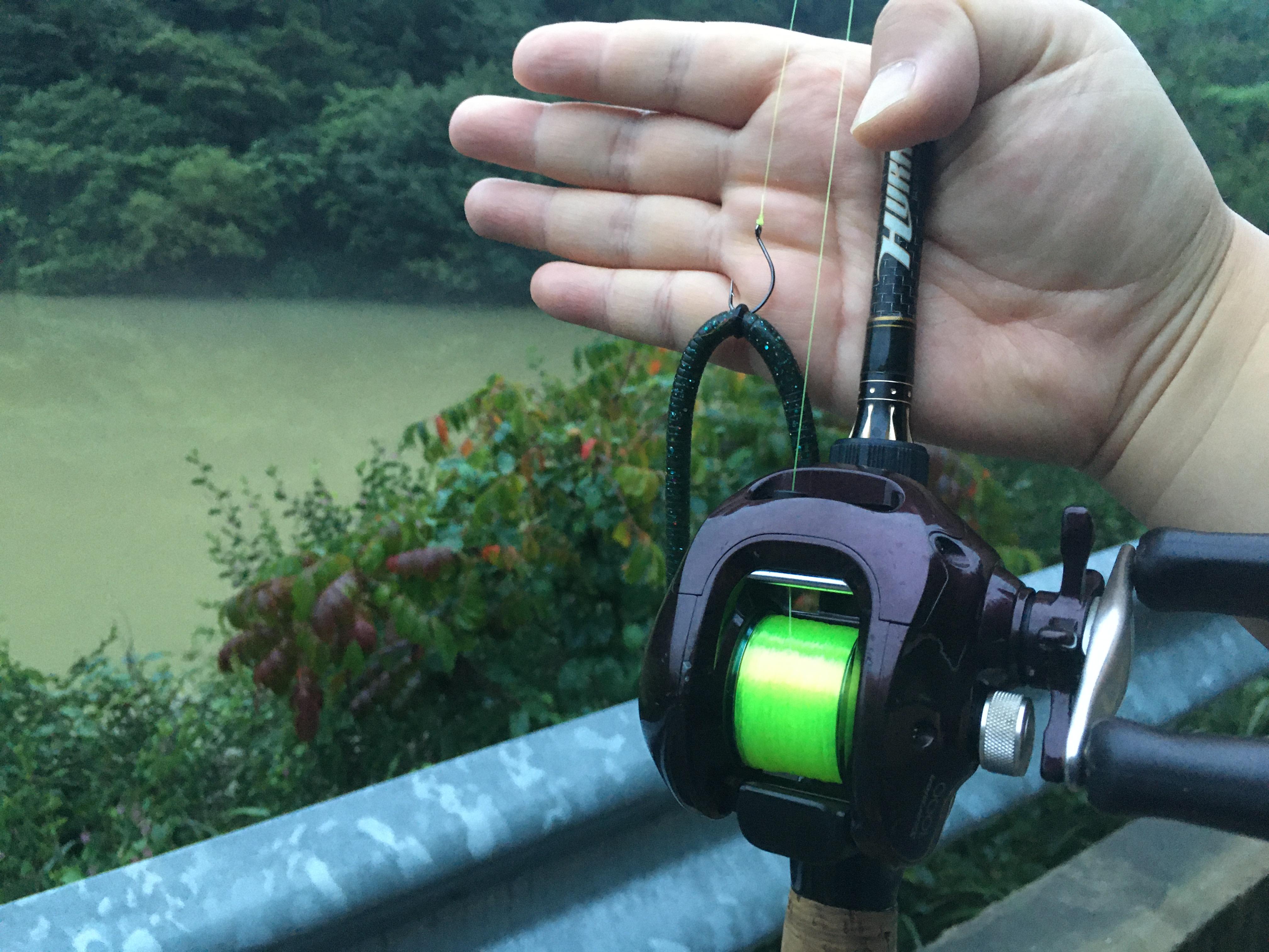 사이즈를 좀 줄여 야마데스 웜에 웨이트훅으로 장타 캐스팅 후 바닥을 긁어 봅니다.