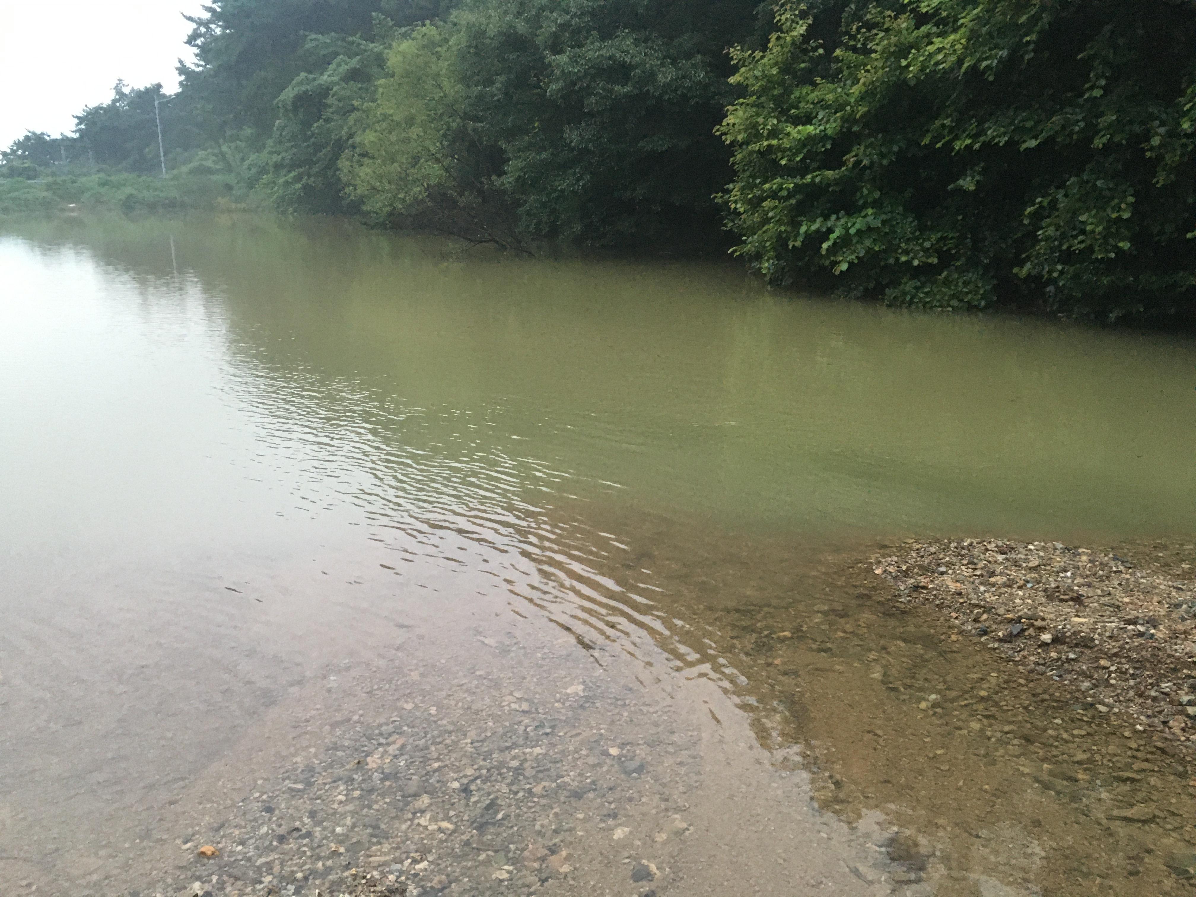 비는 그쳤고, 상류의 토사가 밀려 내려와 브레이크 라인이 형성되었습니다.