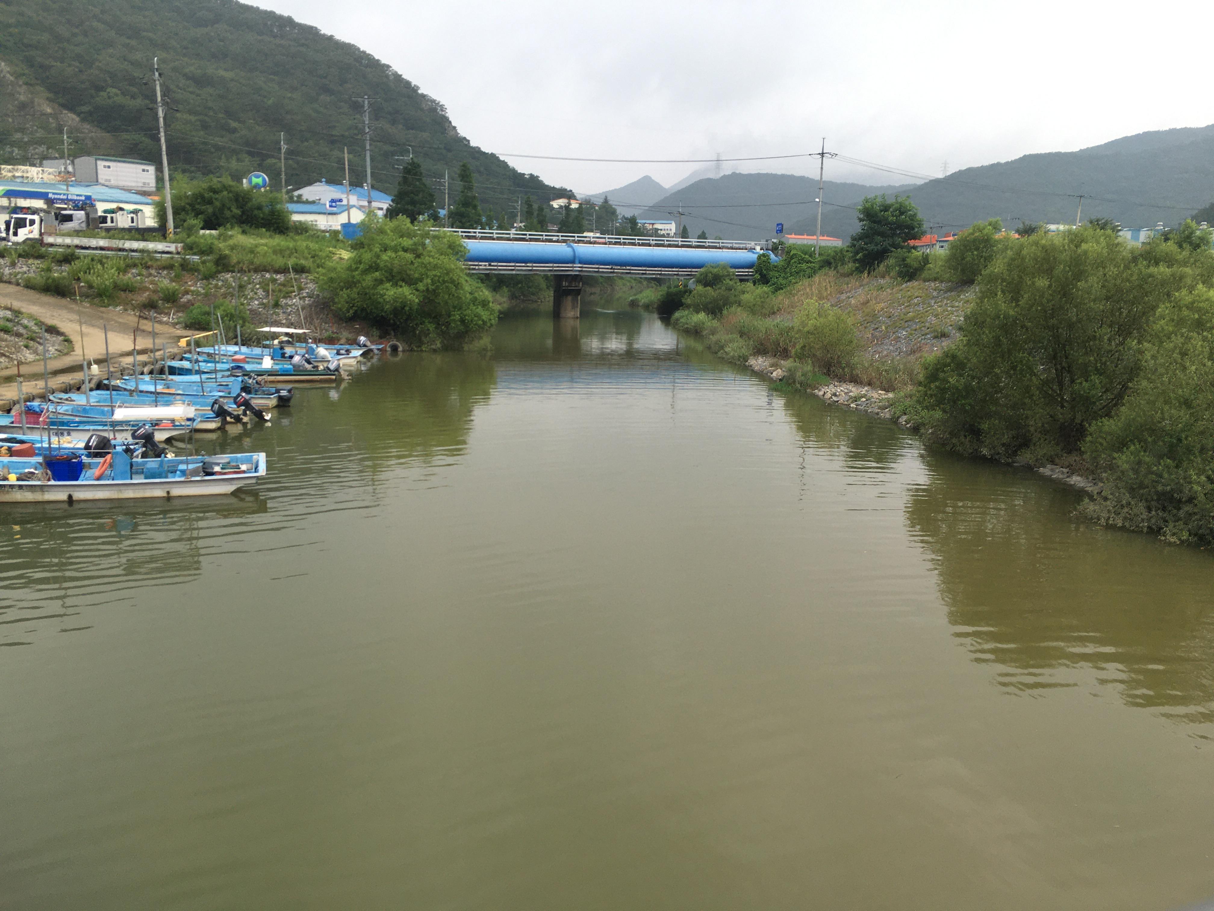 양 쪽 구석탱이 잔잔한 물 속에 짜치들이 많이 몰려 있었습니다.