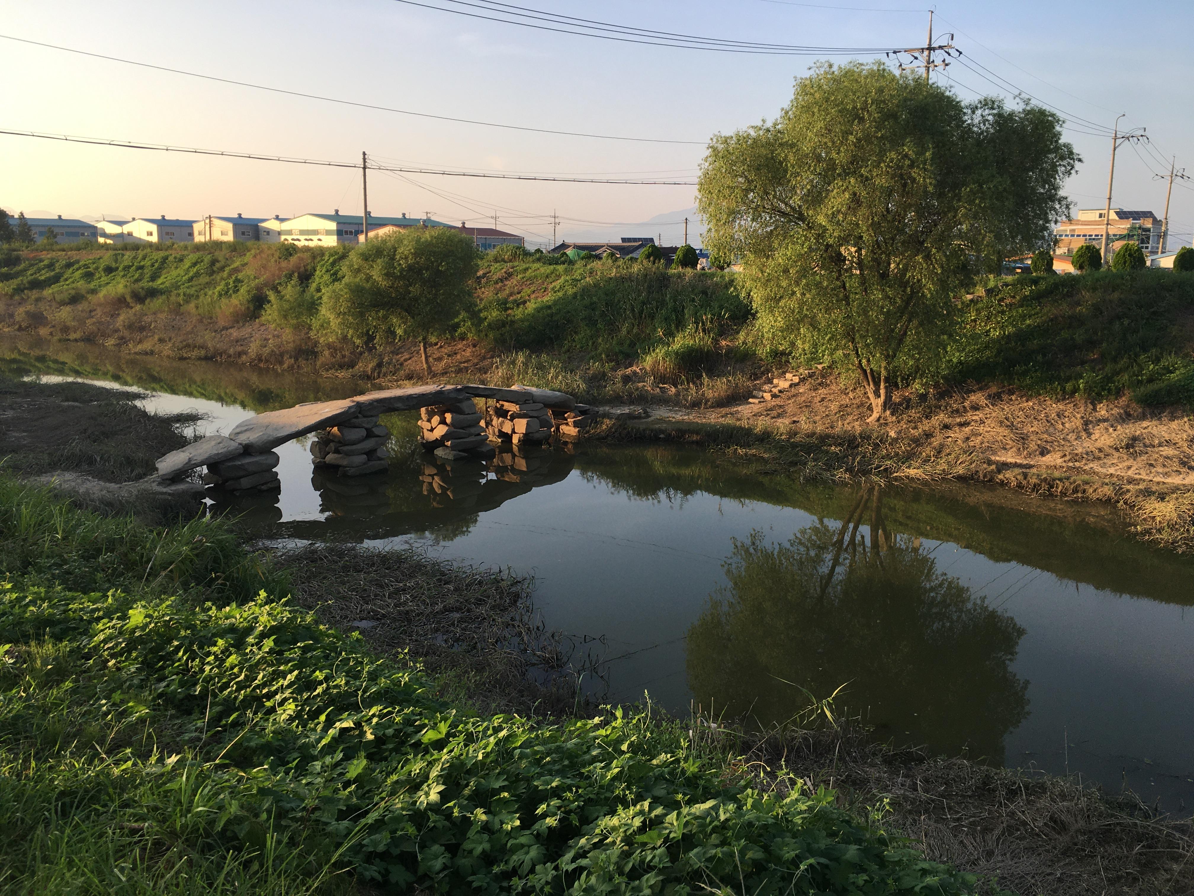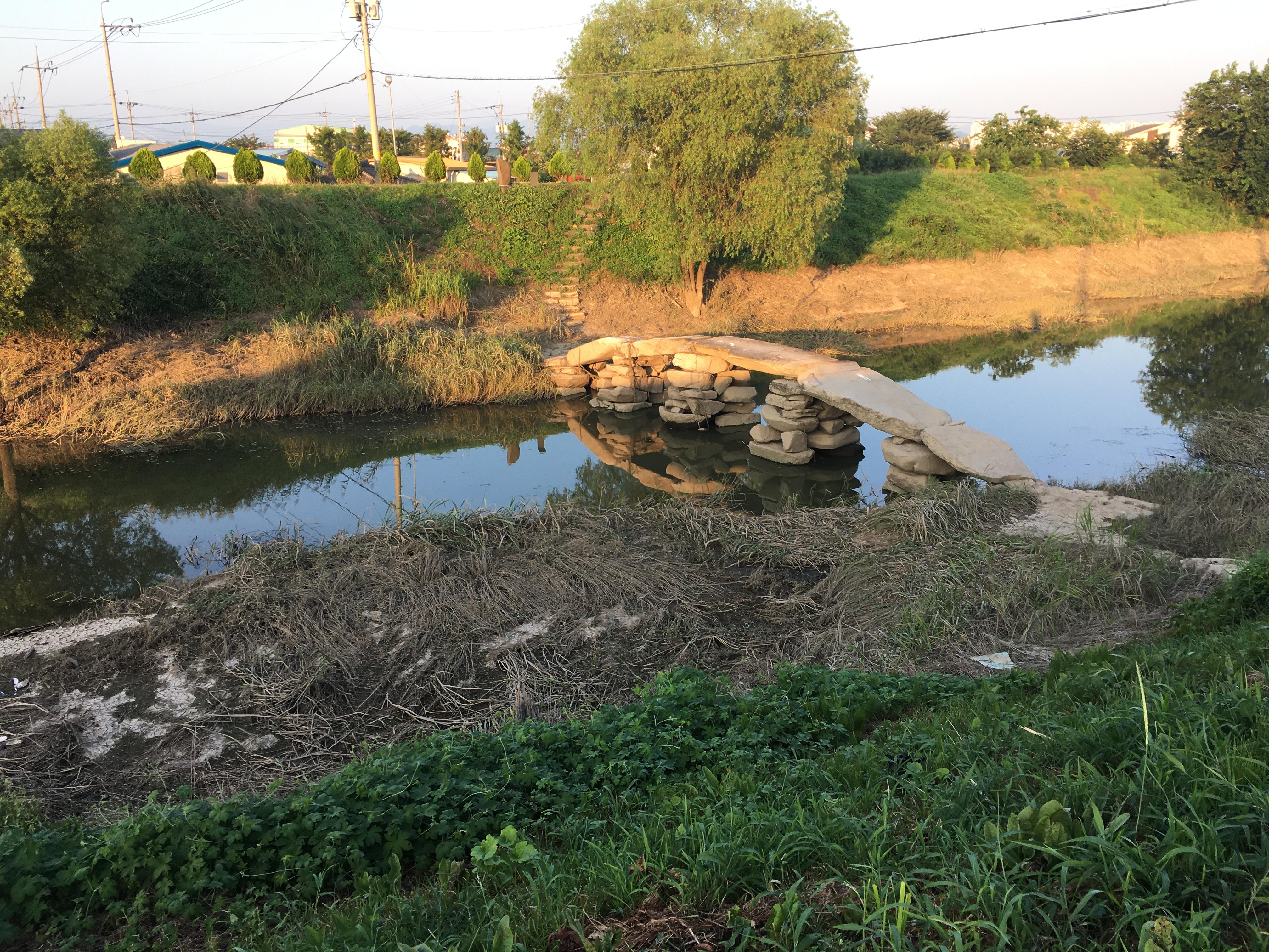 그 위로 여러 장의 평평한 돌을 걸쳐놓은 모습이다. 800여년전 강 양쪽의 주민들이