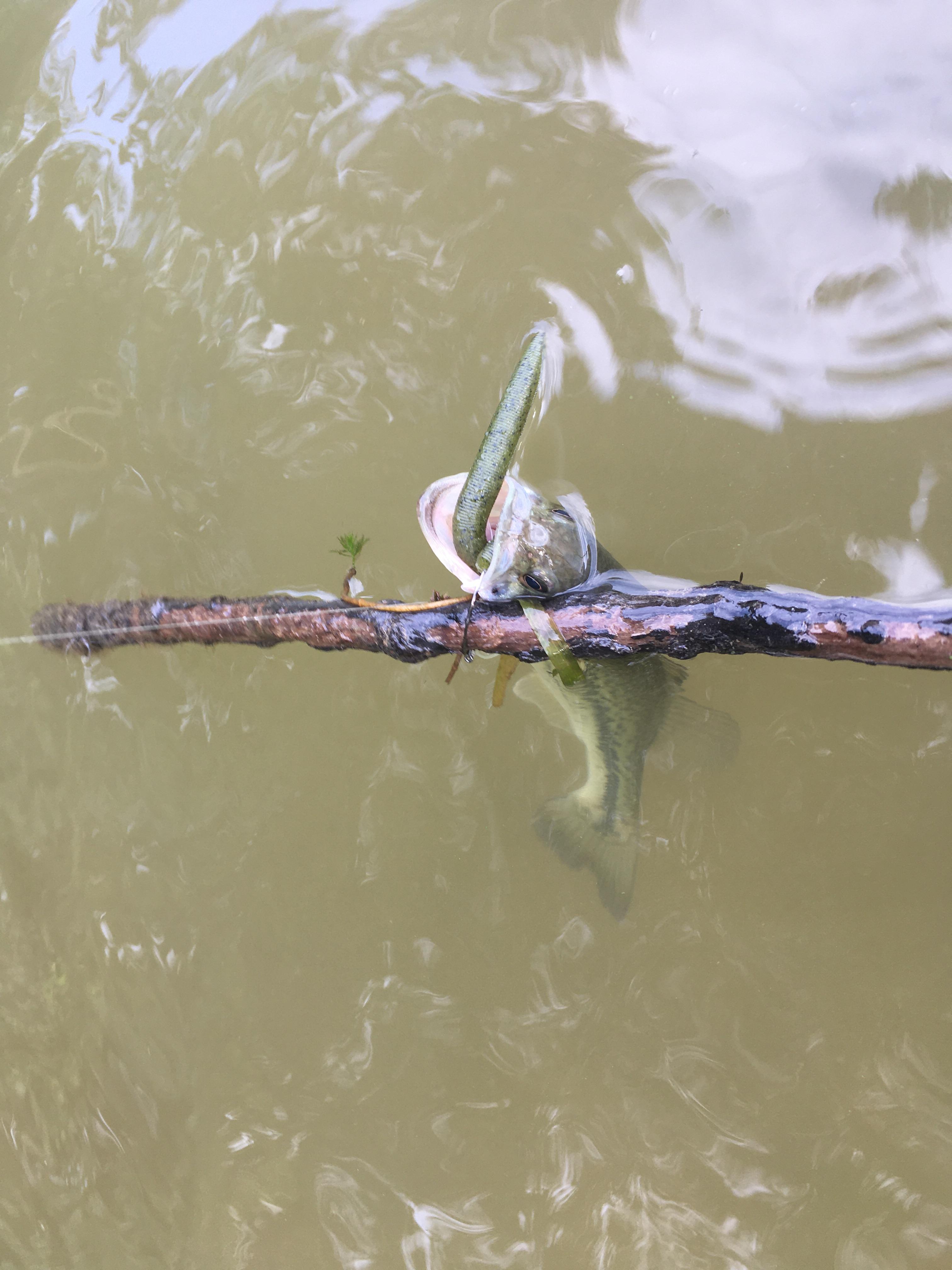 수초 위로 회수해오는데 한마리가 탑을 때리길래..