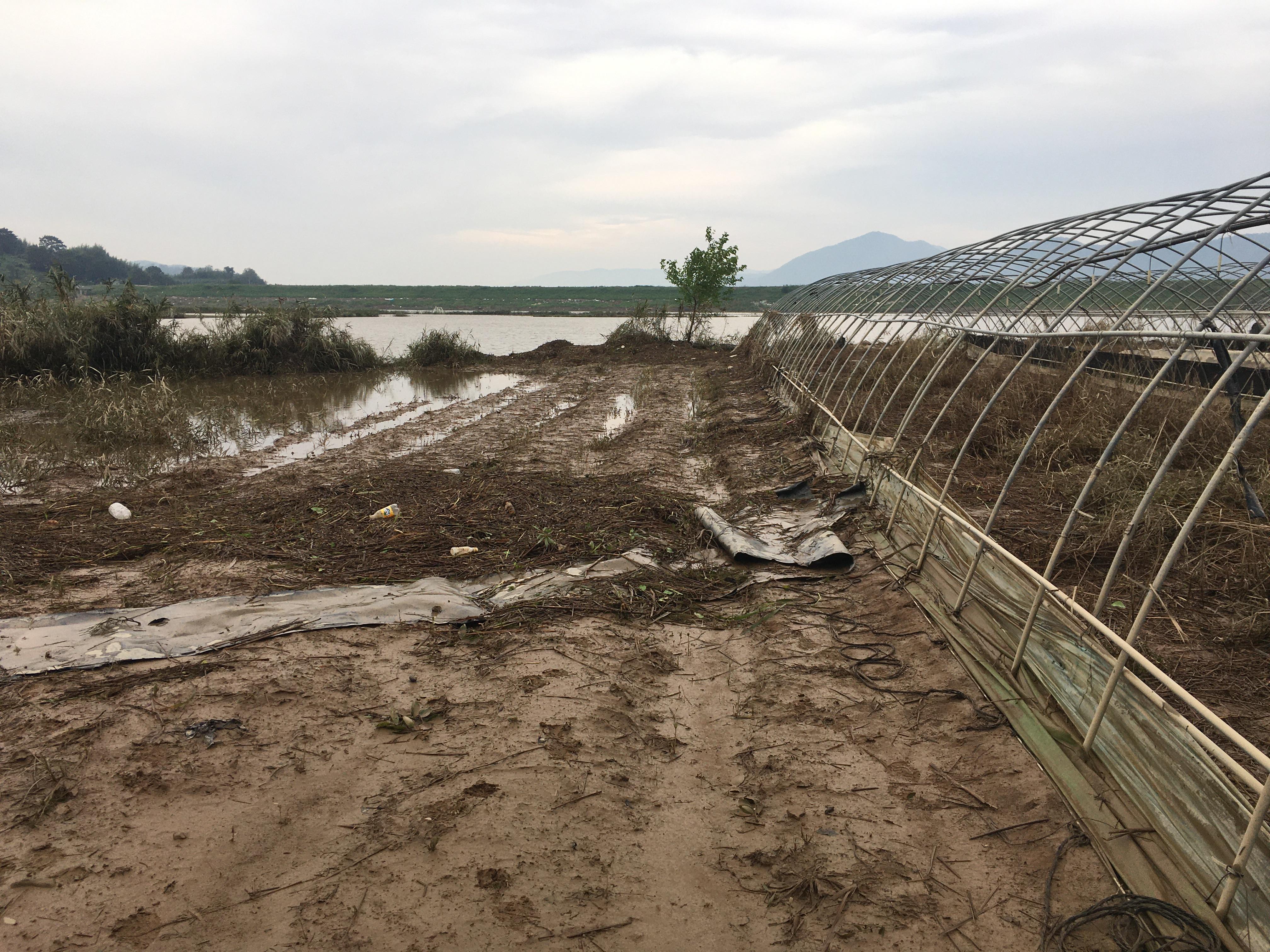 저 앞을 보니 하우스가 다 잠겼습니다.