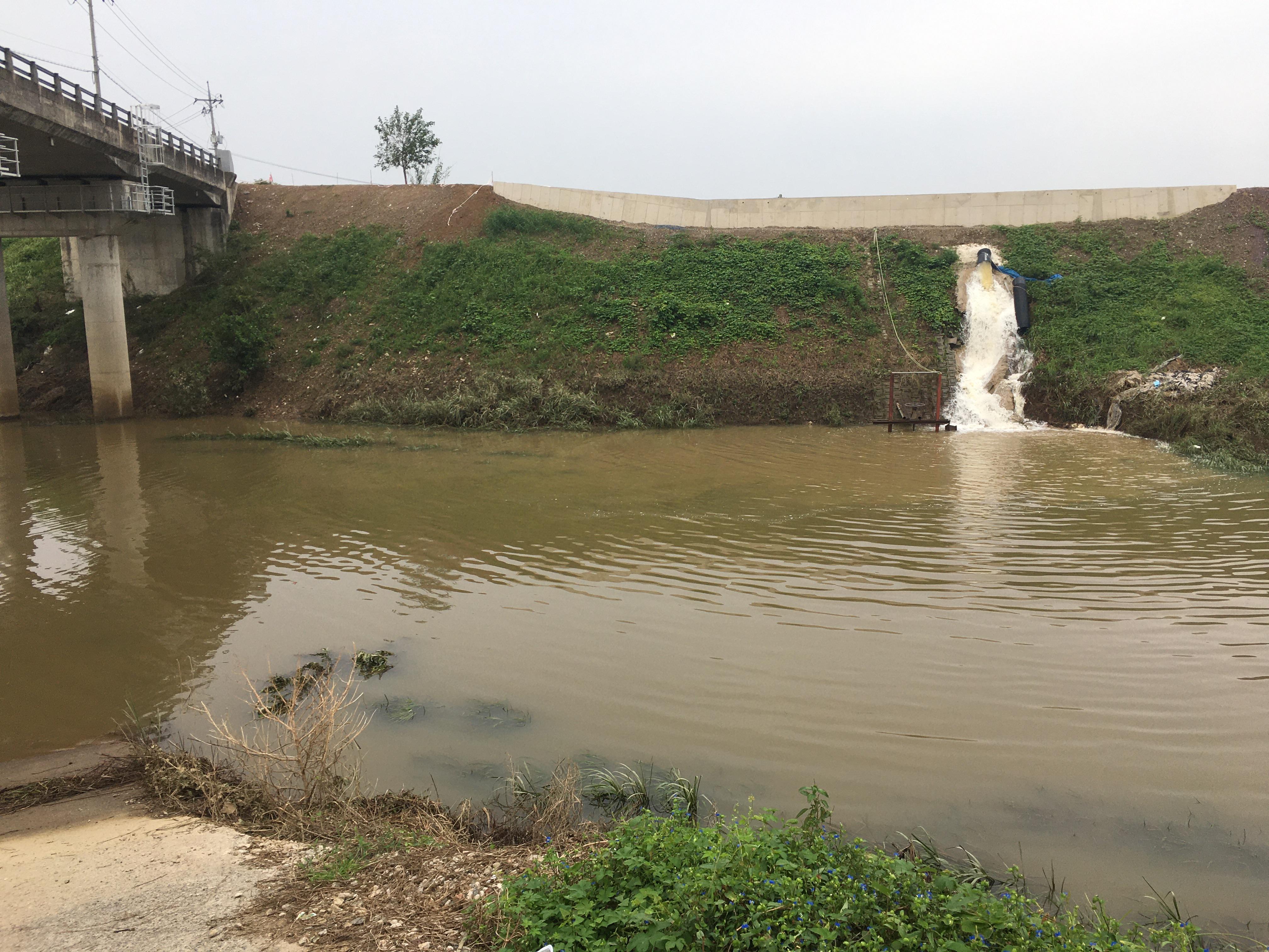 폭포같은 꾸정물의 새물이 쏟아지고 있는 곳을 발견하였습니다.