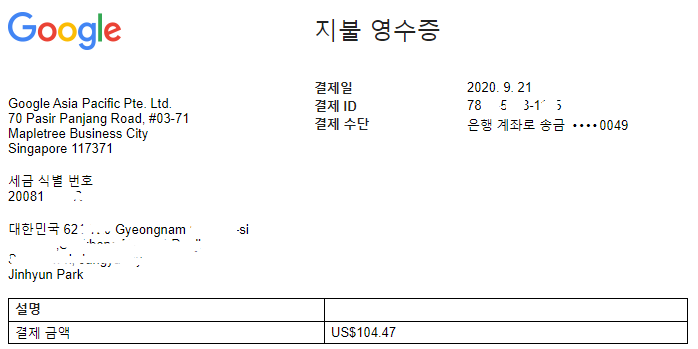 먼저 구글에서 발행한 영수증 보시죠.