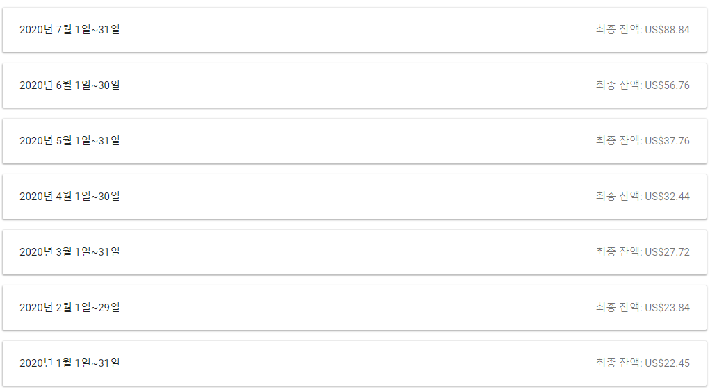 작년 말까지 약 20$의 금액이 누적되어 있었는데,