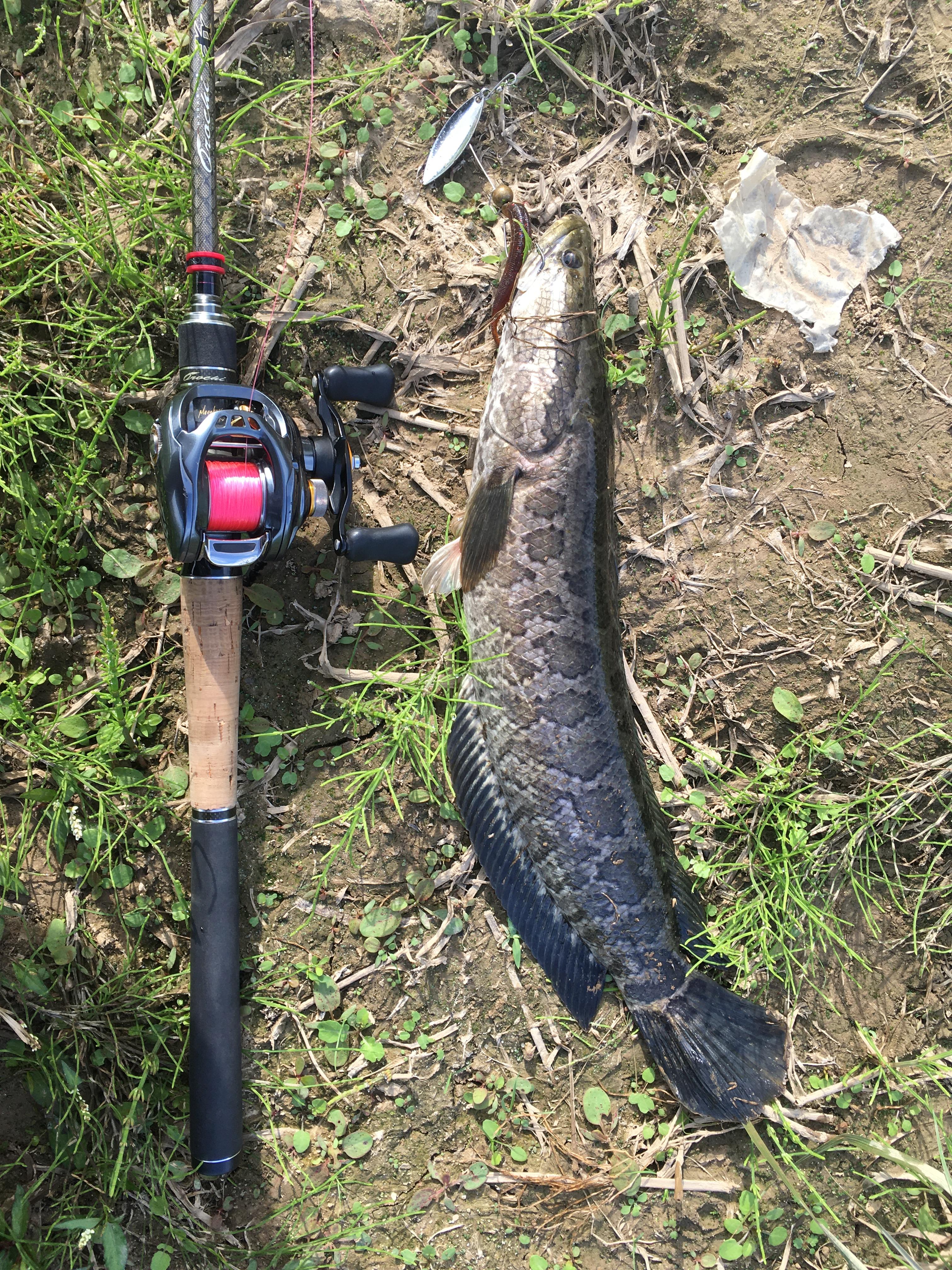 아직 어린 가물치가 과감하게 물고 올라오네요.