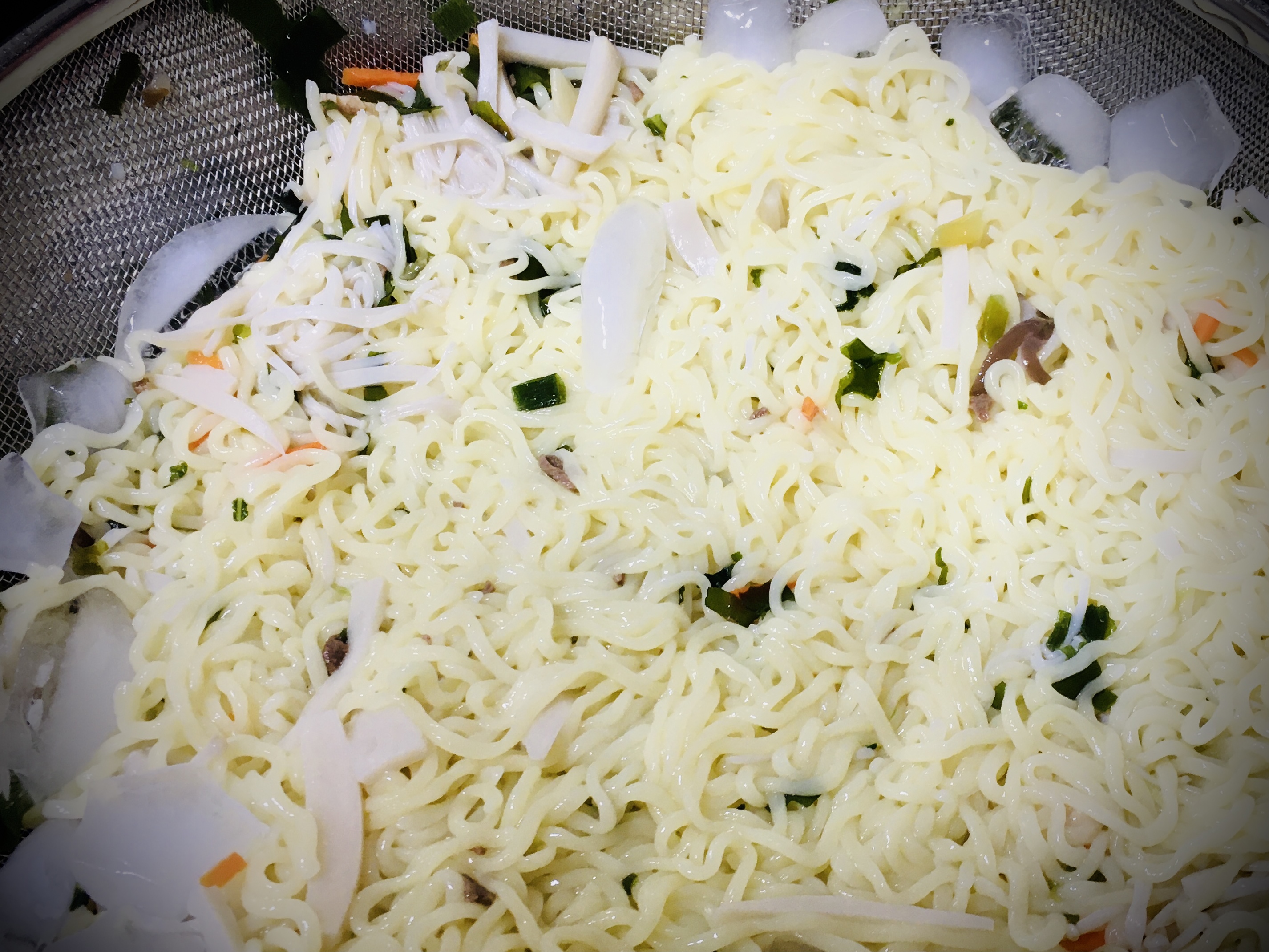 ( 뜨거우니 조심하시고, 얼음이랑 같이 헹구면 면이 더 시원해집니다.