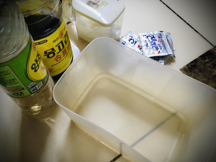 2. 잘 녹을 수 있게 뜨거운 물을 살짝 먼저 붓고
